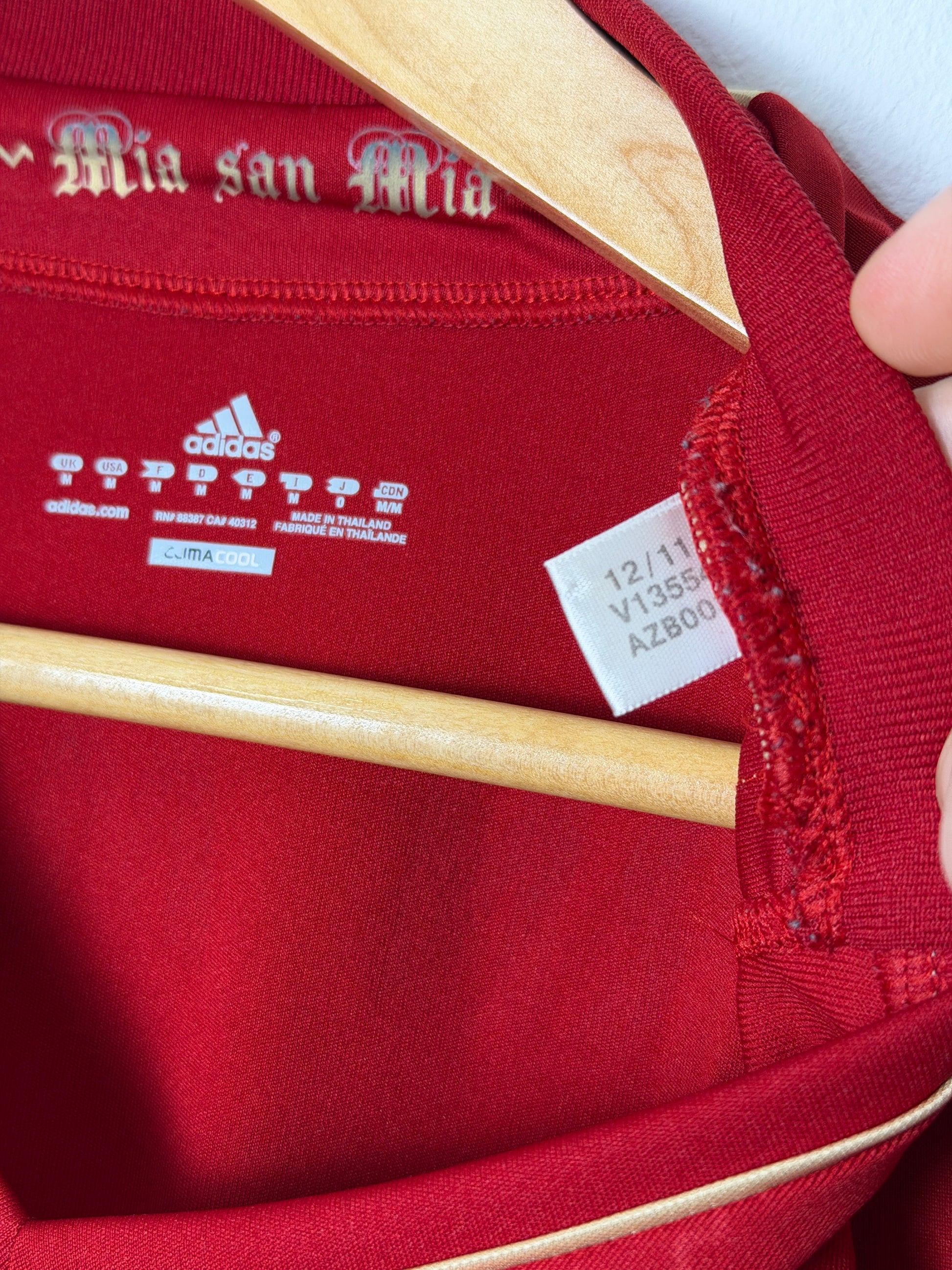Authentic Adidas FC Bayern Munich home shirt from the 2012-13 season, size M. This classic jersey features the iconic Bayern crest and is in good overall condition. Please note there is a defect on the BAYERN MUNICH print on the back. Perfect for collectors or fans of this legendary era in Bayern's history. A genuine piece of football memorabilia from one of Europe's greatest clubs.