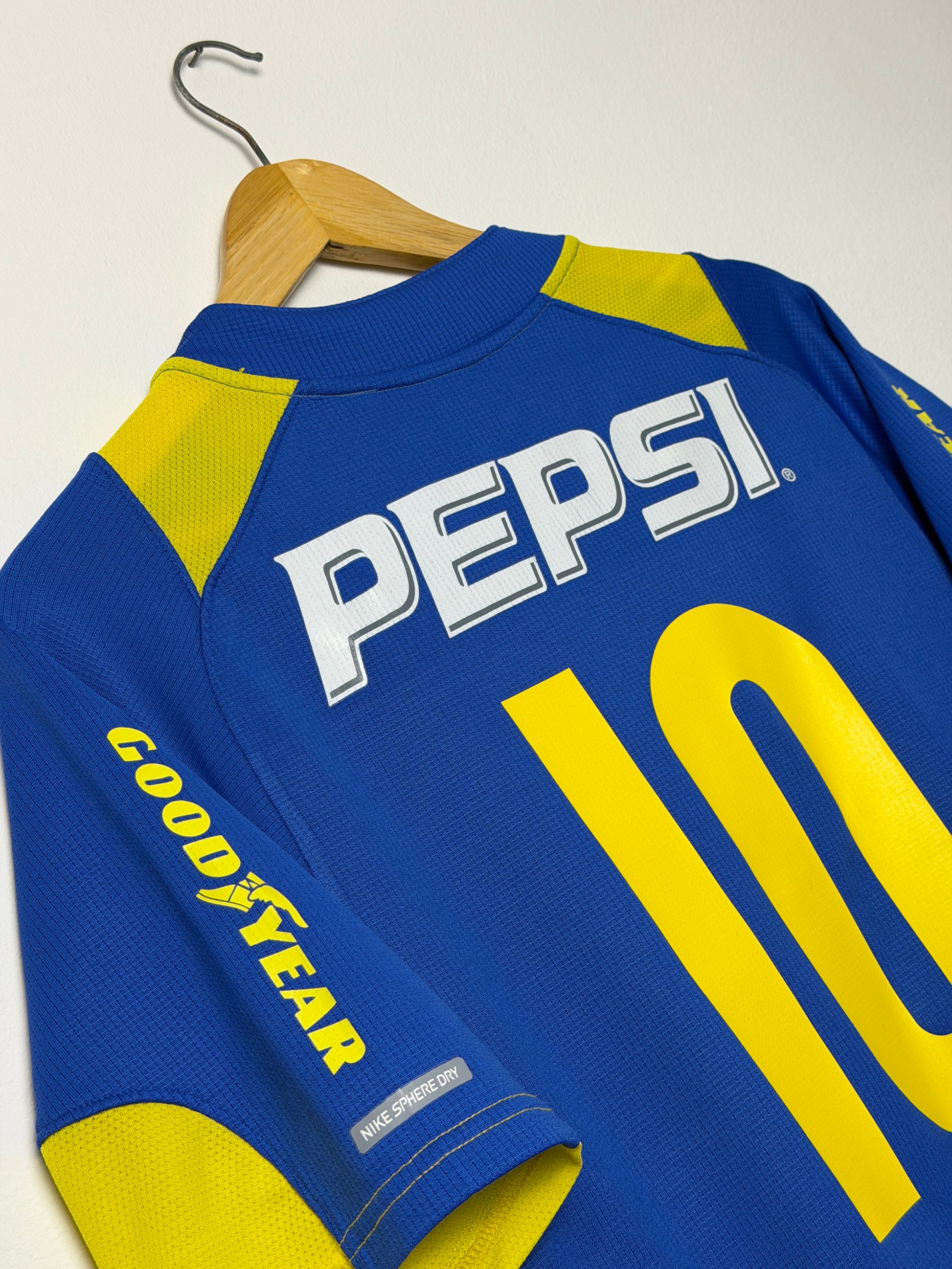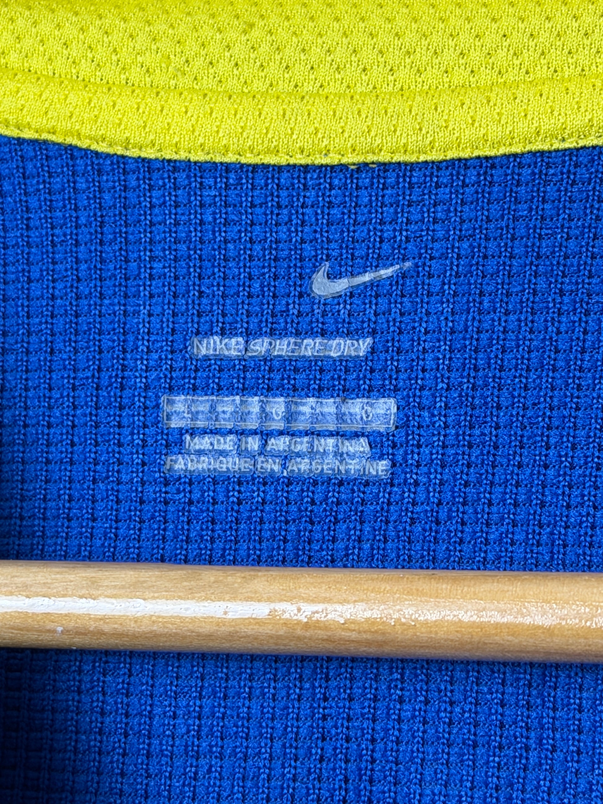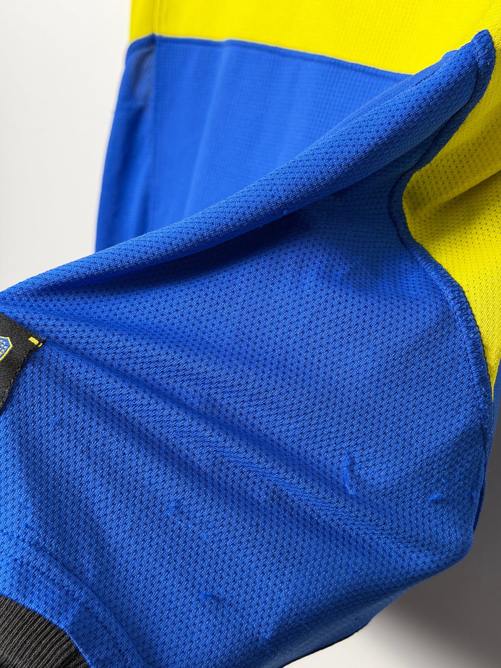 Claim this extraordinary Nike Boca Juniors home shirt from 2004-05, size Large—a genuinely rare find that captures a defining moment in Argentine football. This authentic vintage jersey displays the natural character and heritage, with minor pulls. The classic blue and gold colourway remains vibrant, and the Nike insignia stands proud across the chest. Perfect for dedicated collectors and Boca devotees seeking genuine memorabilia, this shirt transcends typical fan wear to become a tangible piece of sporting legacy. Vintage kits from this iconic era rarely surface on the market—this is your opportunity to own something truly irreplaceable before it slips away.