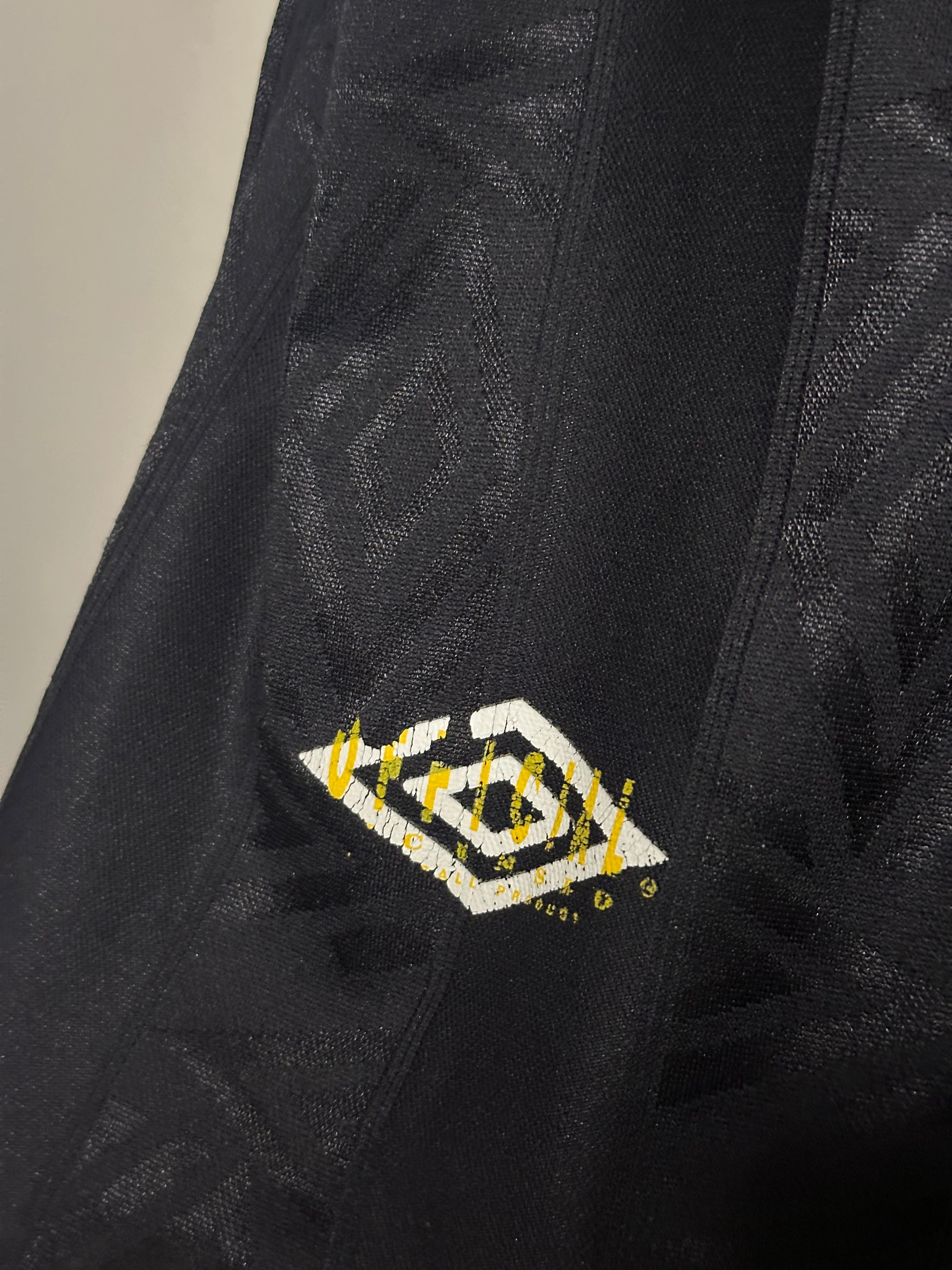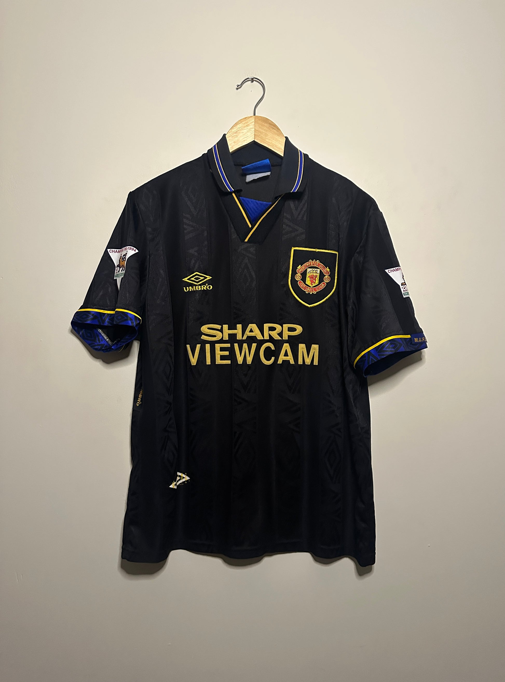 Relive one of football's most iconic moments with this authentic Eric Cantona Manchester United away shirt from 1993-95. Crafted by Umbro, this classic piece captures the era of one of the Premier League's greatest players. In excellent condition, it's a must-have for collectors and United supporters who remember Cantona's legendary impact at Old Trafford. Own a piece of football history that represents pure style and sporting excellence.