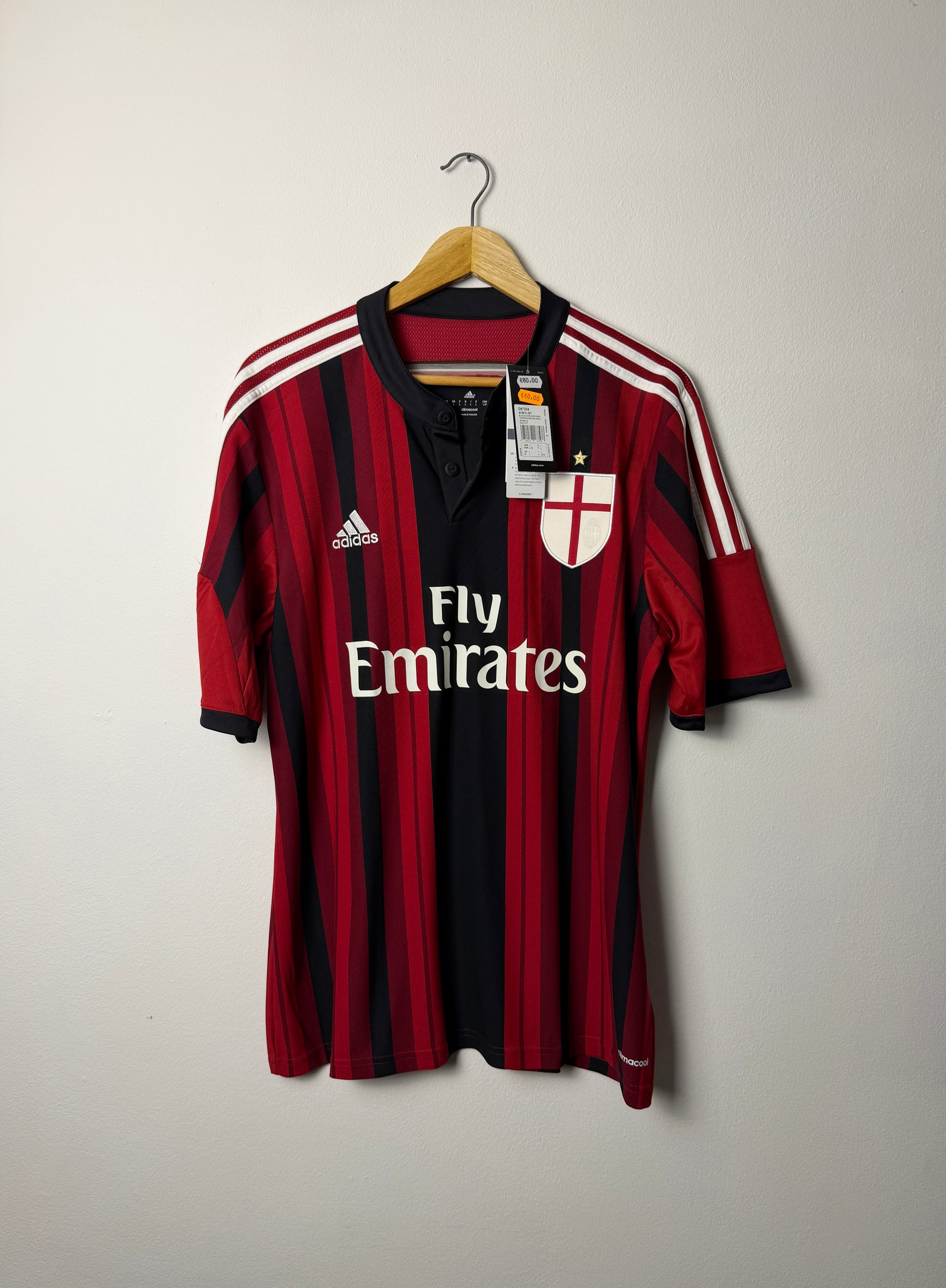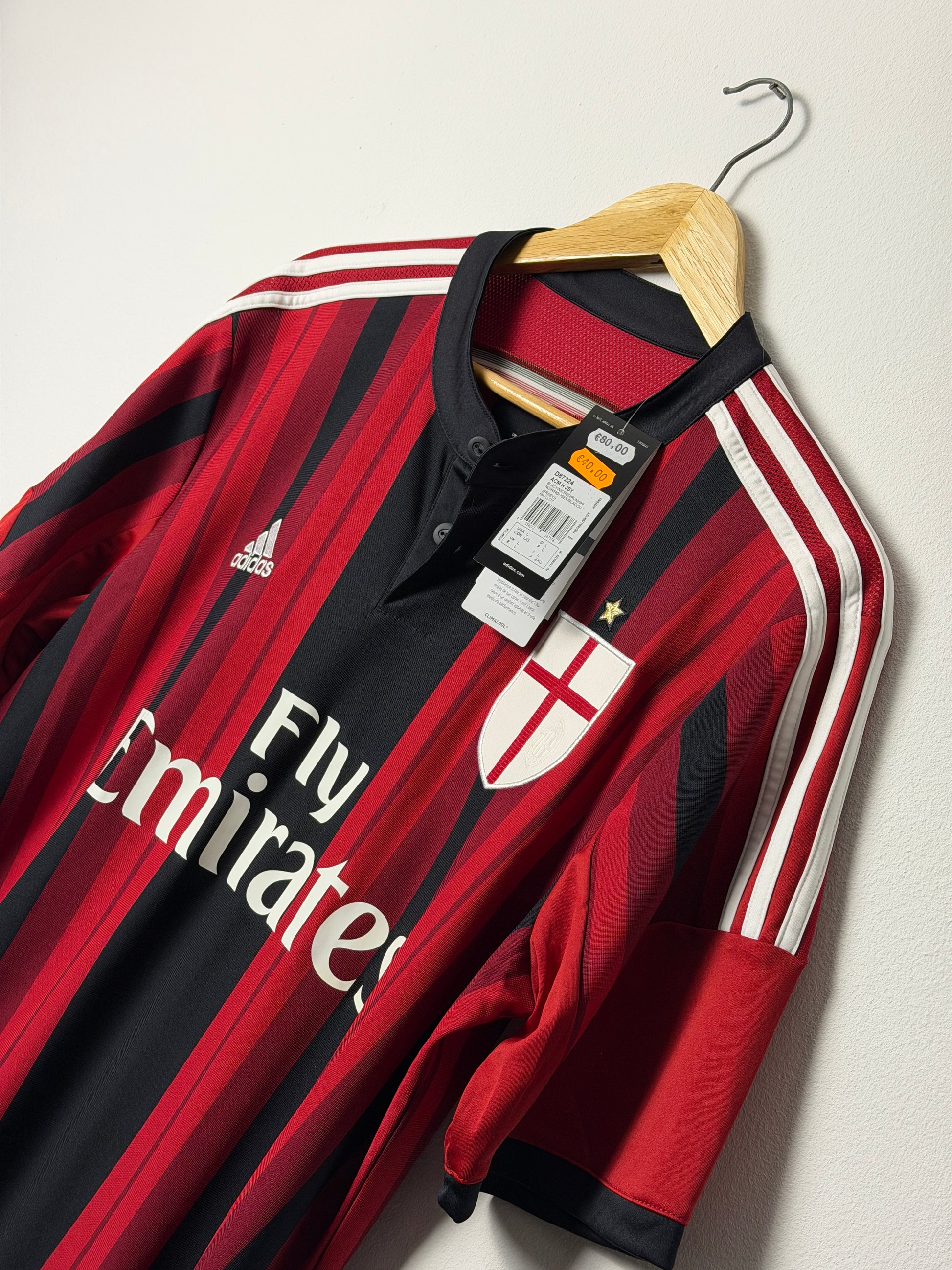 Authentic Fernando Torres AC Milan home shirt from the 2014-15 season, crafted by Adidas. This vintage football jersey captures a memorable era for the Rossoneri, featuring the iconic red and black striped design with official club branding. Size L. A must-have for collectors and Torres enthusiasts alike, this unworn piece represents quality Adidas construction and genuine Serie A heritage. Perfect for displaying your passion for one of football's most exciting strikers during his time in Italy.