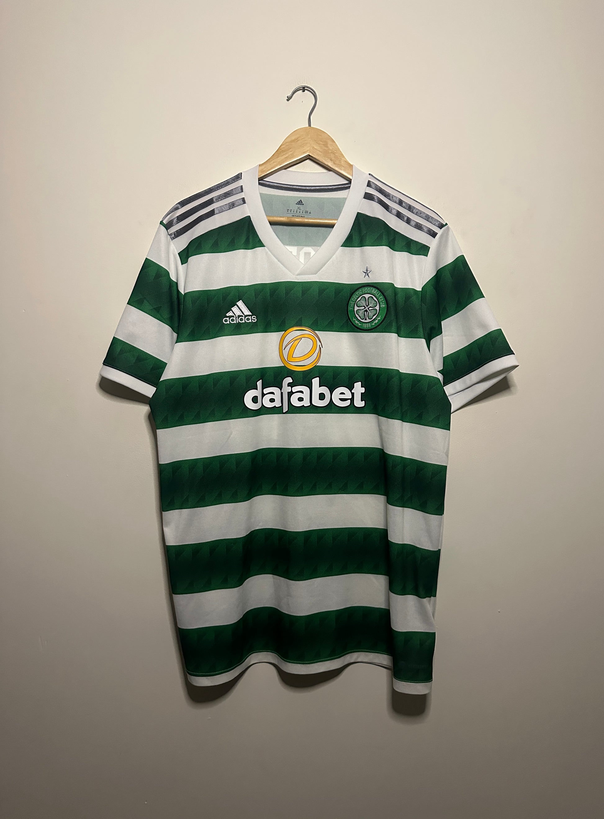Jota's iconic Celtic FC home shirt from the 2022-23 season in excellent condition. This authentic Adidas jersey captures the pride of one of football's greatest clubs, featuring the classic green and white design that's defined Celtic Park for generations. Size XL offers a comfortable fit for dedicated supporters. Whether you're a collector, match-day enthusiast, or simply want to wear a piece of football history, this premium Adidas kit delivers quality and heritage. A must-have for any Celtic fan's wardrobe.