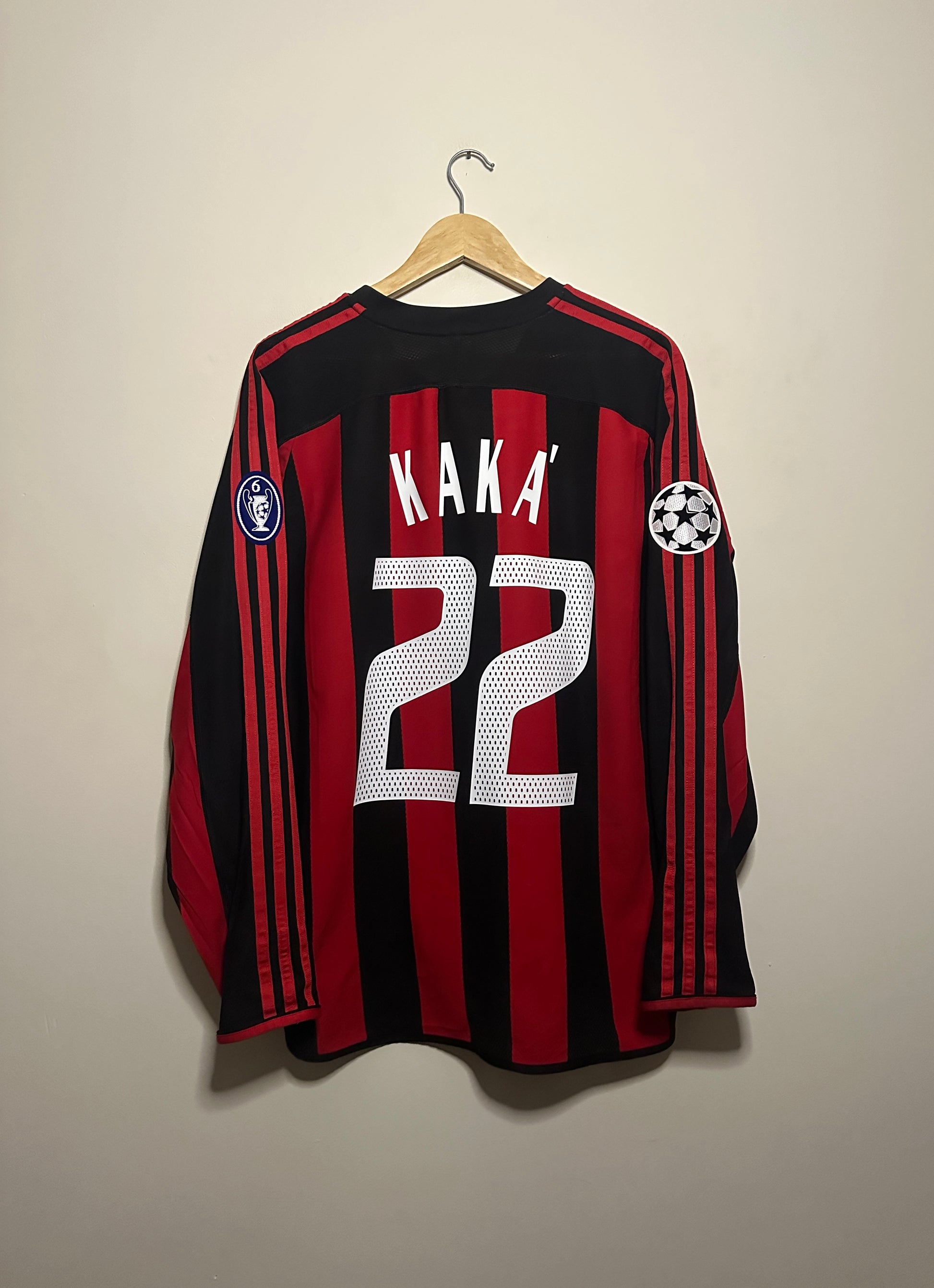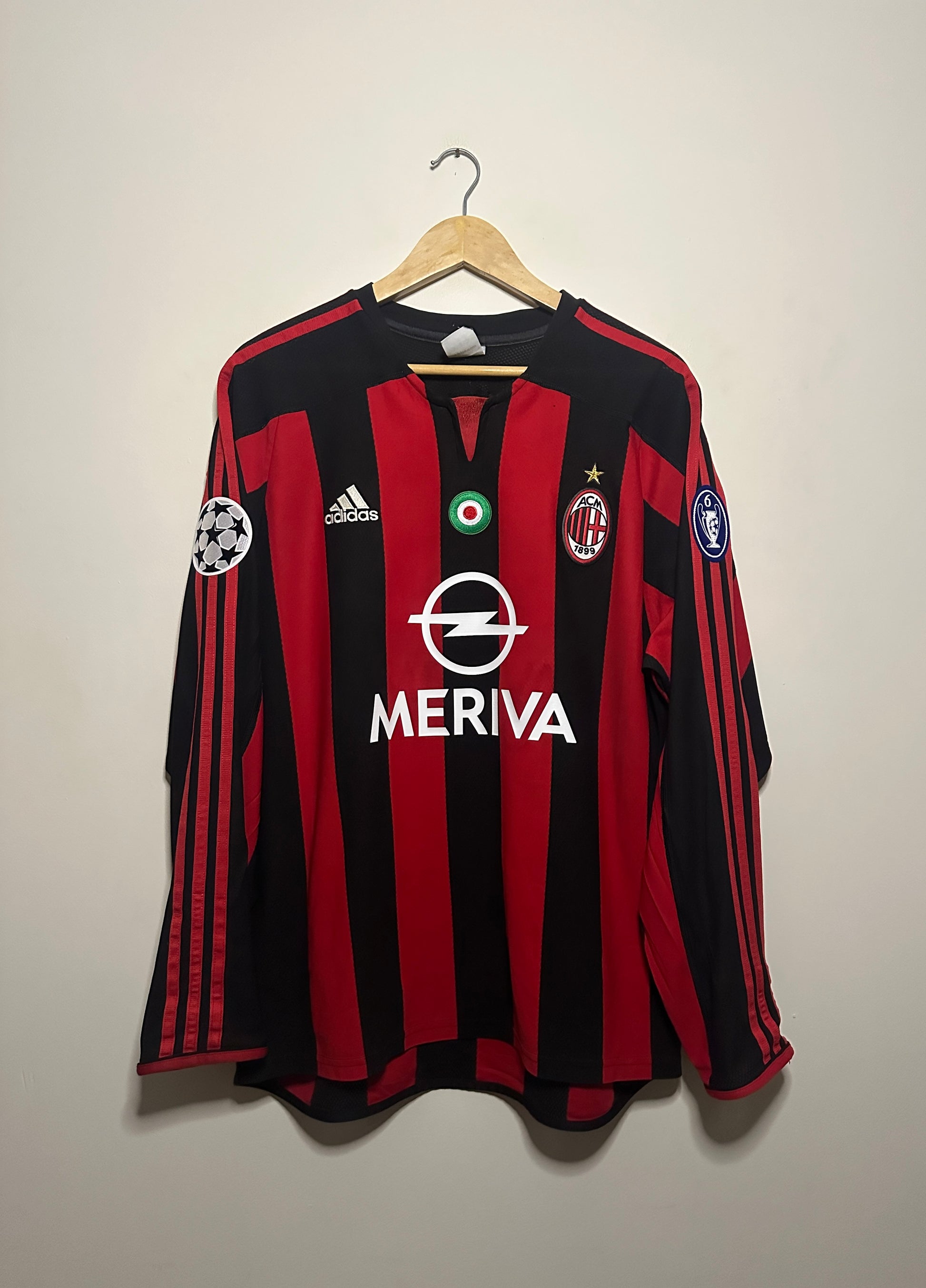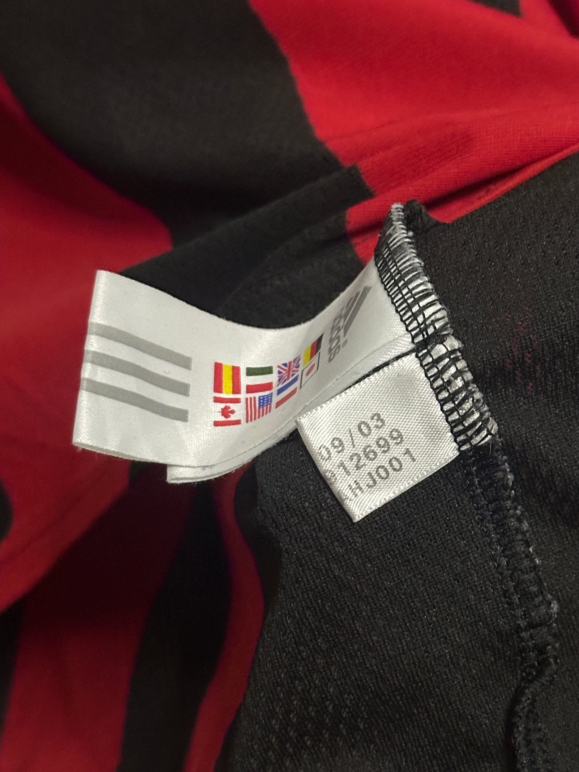 Own a piece of AC Milan's golden era with this rare Kaka 2003-04 long sleeve home shirt in size L. Crafted by Adidas with the coveted baggy fit of the period, this vintage gem displays Champions League and Coppa Italia patches from an unforgettable season. Despite its age, the shirt remains in good condition—only subtle sponsor replacement marks and a small pin hole hint at its storied past. Perfect for devoted collectors and Milan enthusiasts who appreciate authentic football memorabilia with genuine character and provenance from one of Europe's most dominant clubs.