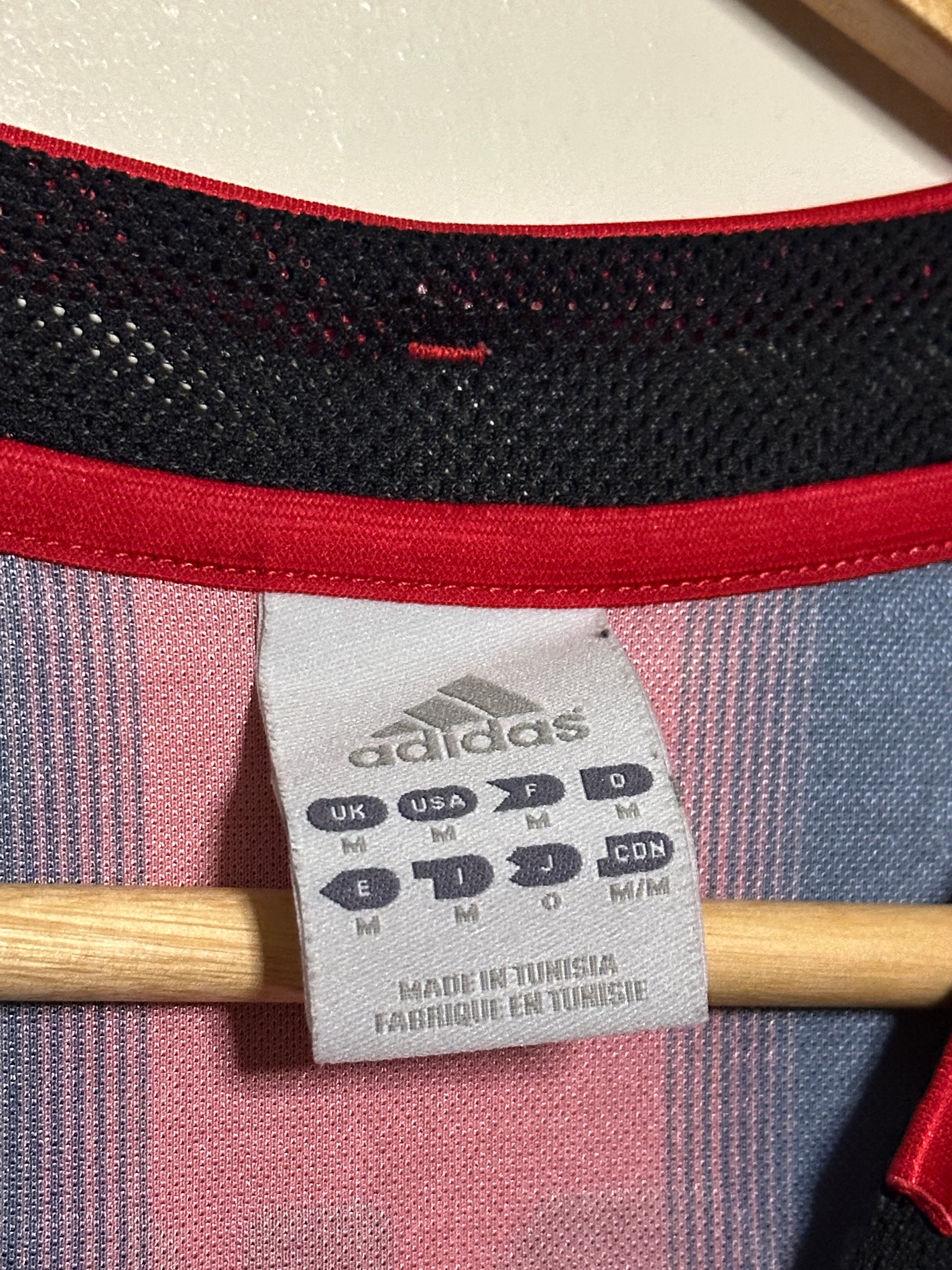 This Adidas Kaka AC Milan 2004-05 long sleeve home football shirt is in very good condition, showcasing the iconic style of a memorable season. Crafted by Adidas, it combines authentic design with lasting quality. Perfect for collectors or fans looking to celebrate a classic moment in football history. The medium size offers a comfortable fit for everyday wear or display.