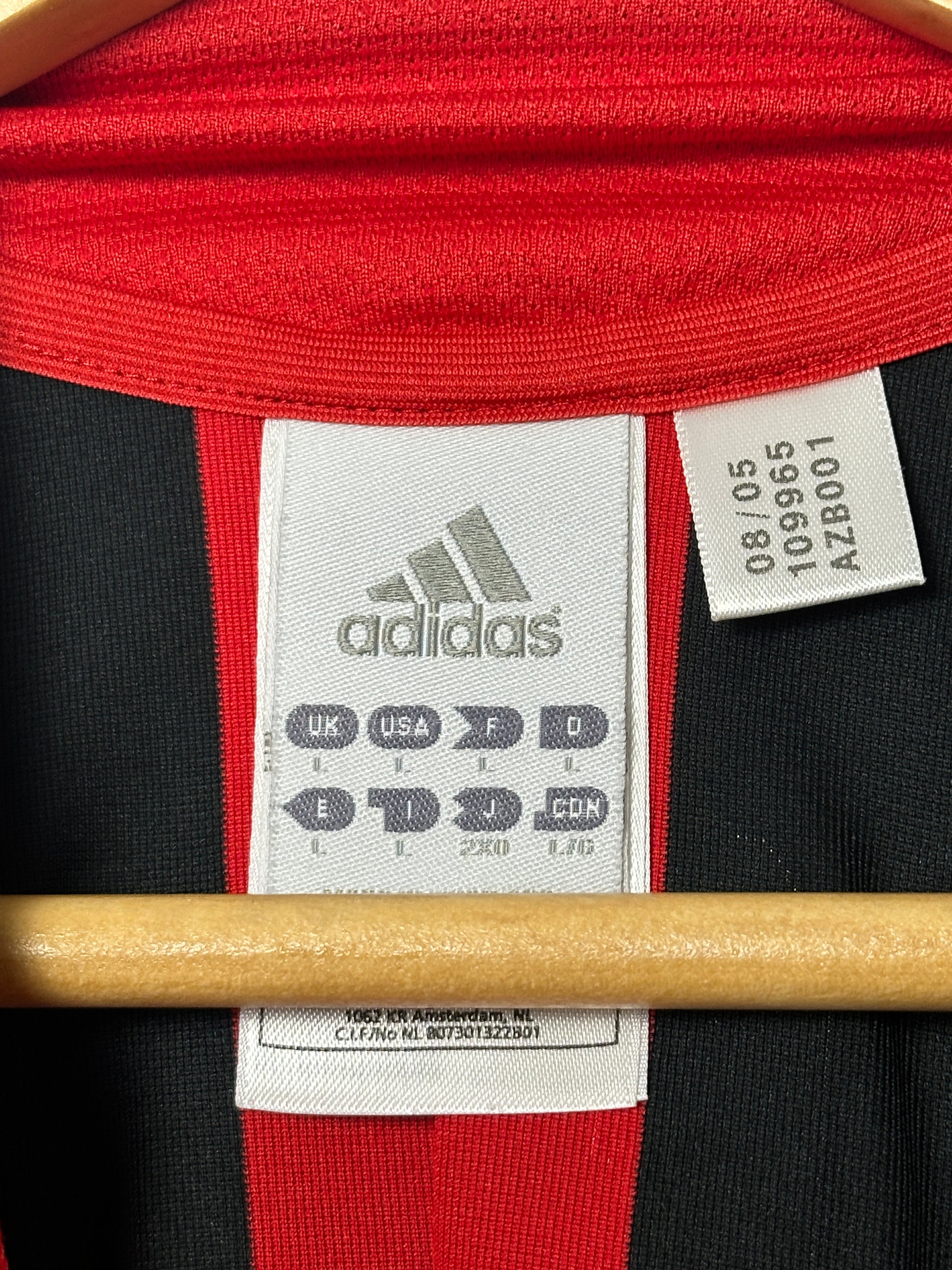 Secure this exceptional Kaka AC Milan 2005-06 home shirt, size large, by Adidas—a remarkable piece from the club's illustrious heritage. Preserved in excellent condition, this vintage jersey showcases the legendary red and black stripes worn during a pivotal season. Ideal for devoted supporters and serious collectors, it represents an unforgettable chapter in football's most storied clubs. A wearable investment that honours one of the sport's greatest players and eras.