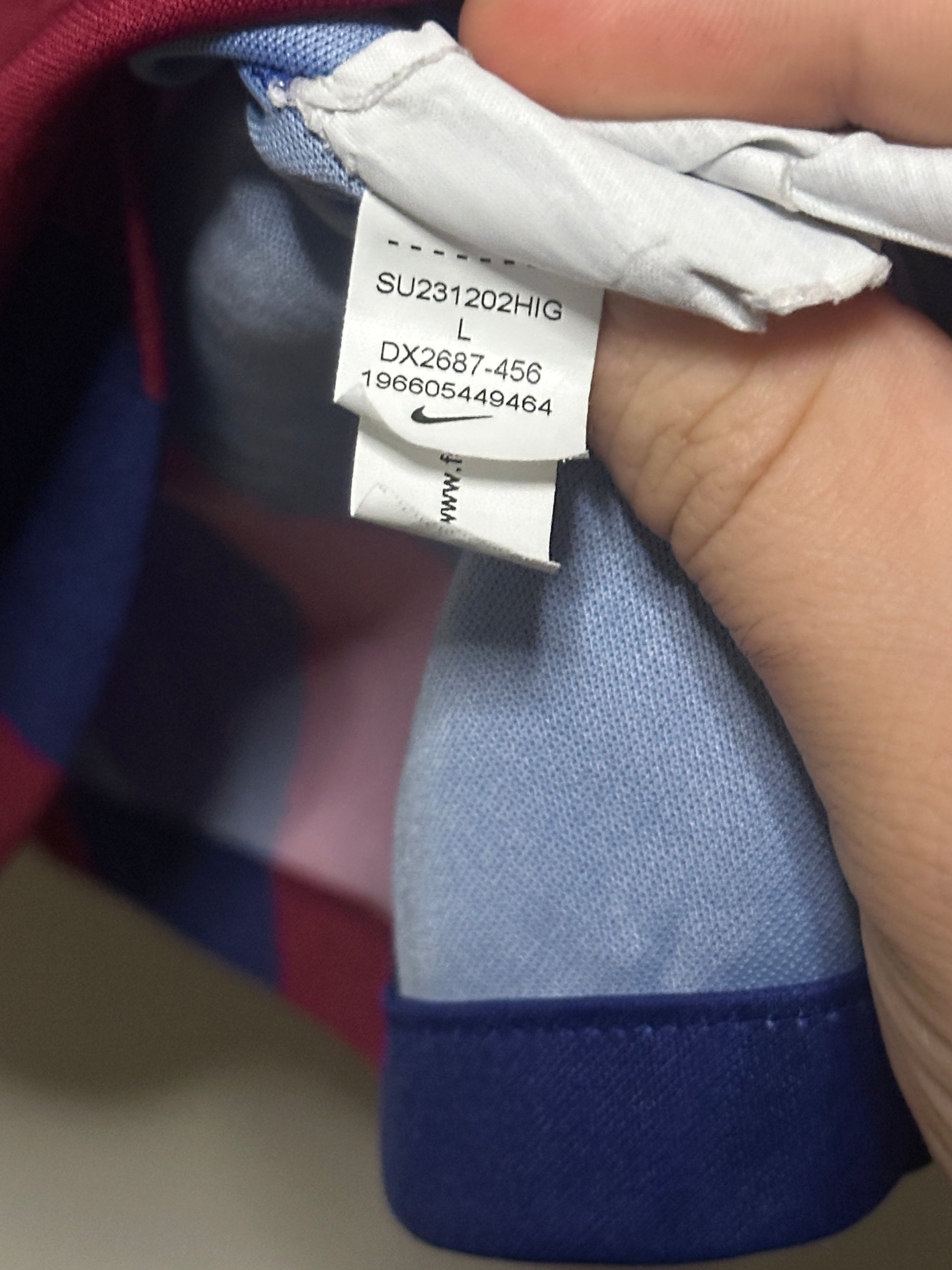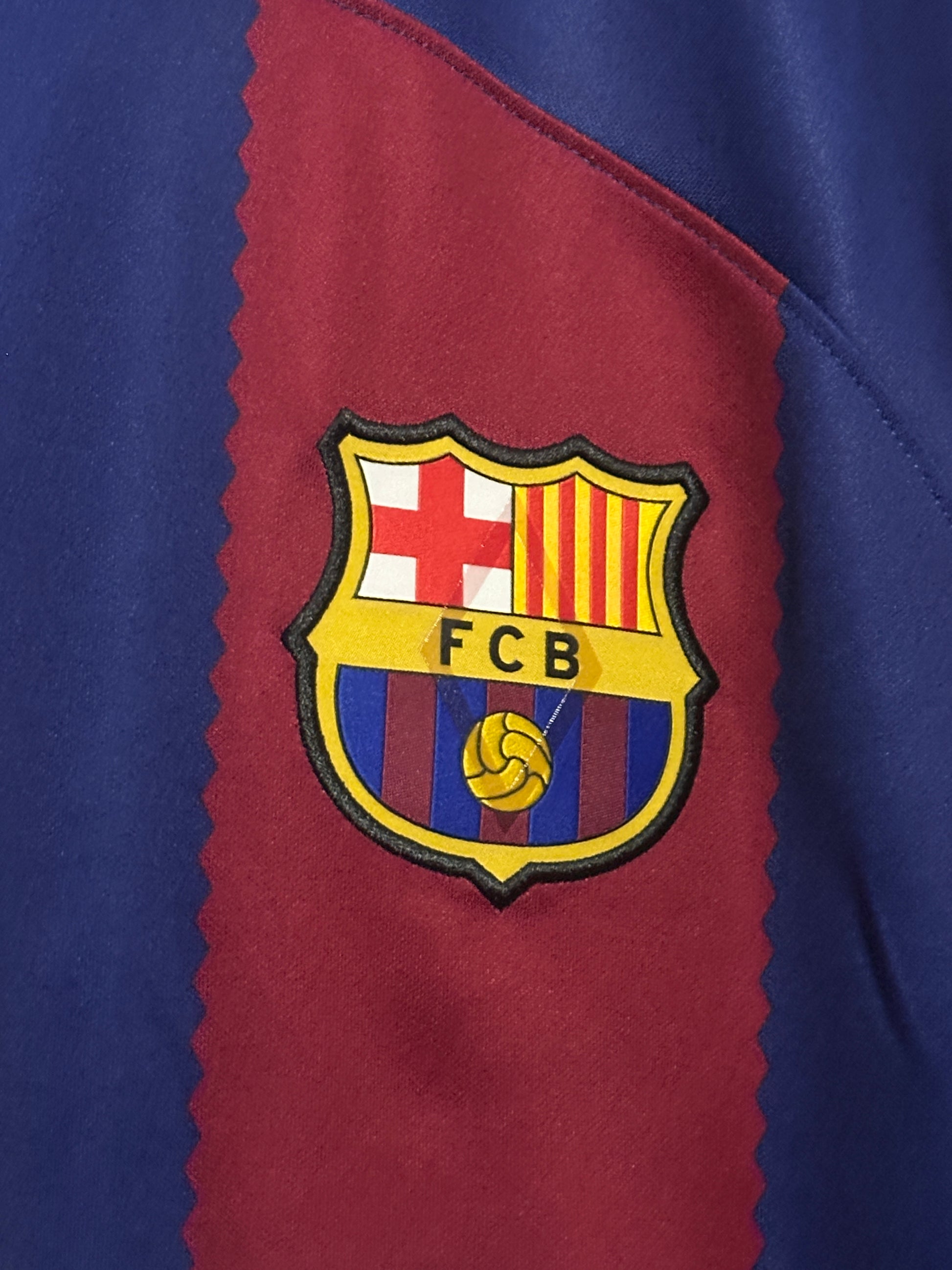 Authentic Nike FC Barcelona home shirt from the 2022-23 season, featuring Lamine Yamal's number. This size L piece is in very good condition with only a minor pull above the numbers—barely noticeable and easily overlooked. A genuine collectible for Barcelona supporters and football enthusiasts who appreciate quality vintage kits. Own a piece of Blaugrana history at an exceptional value.