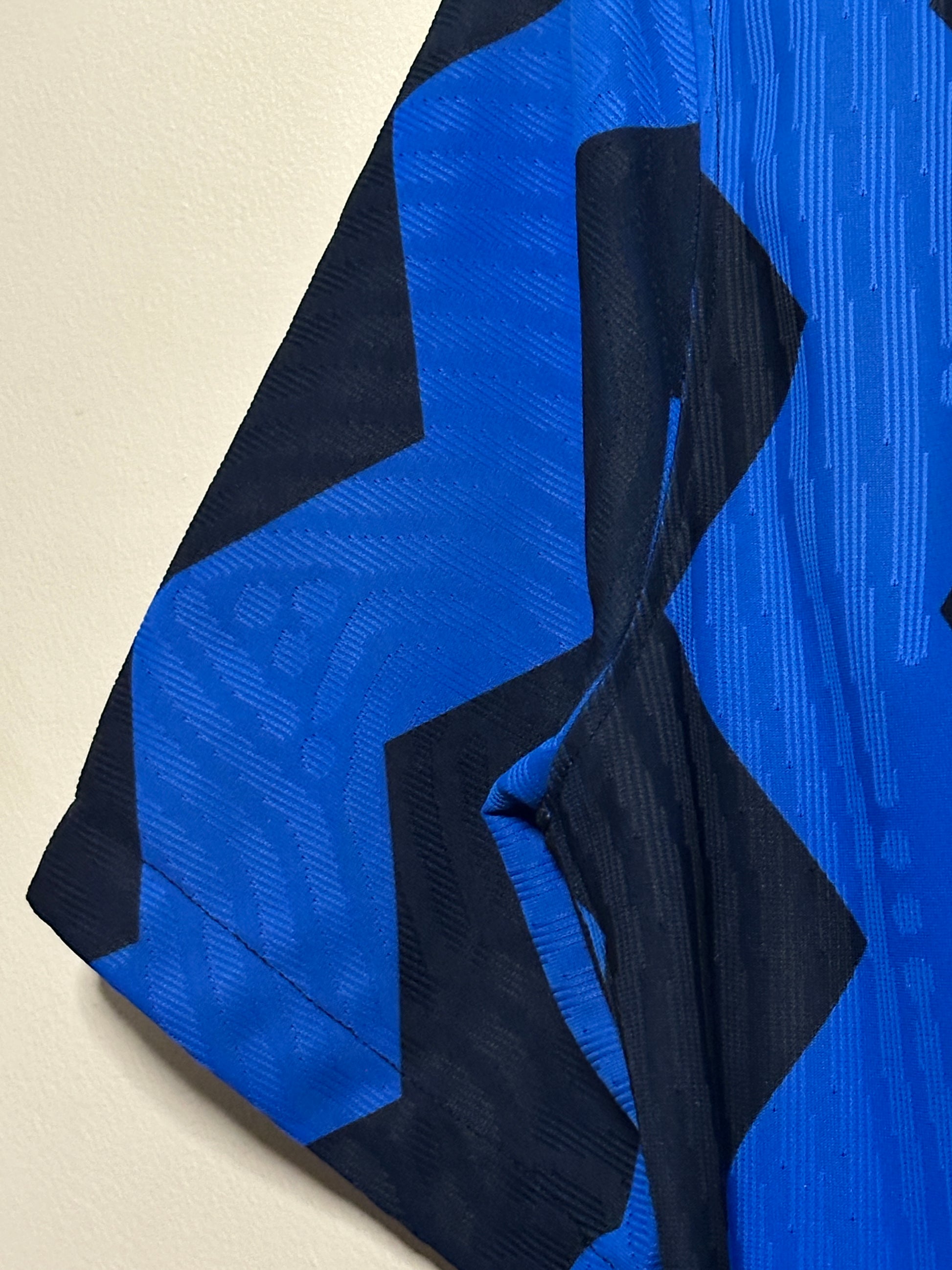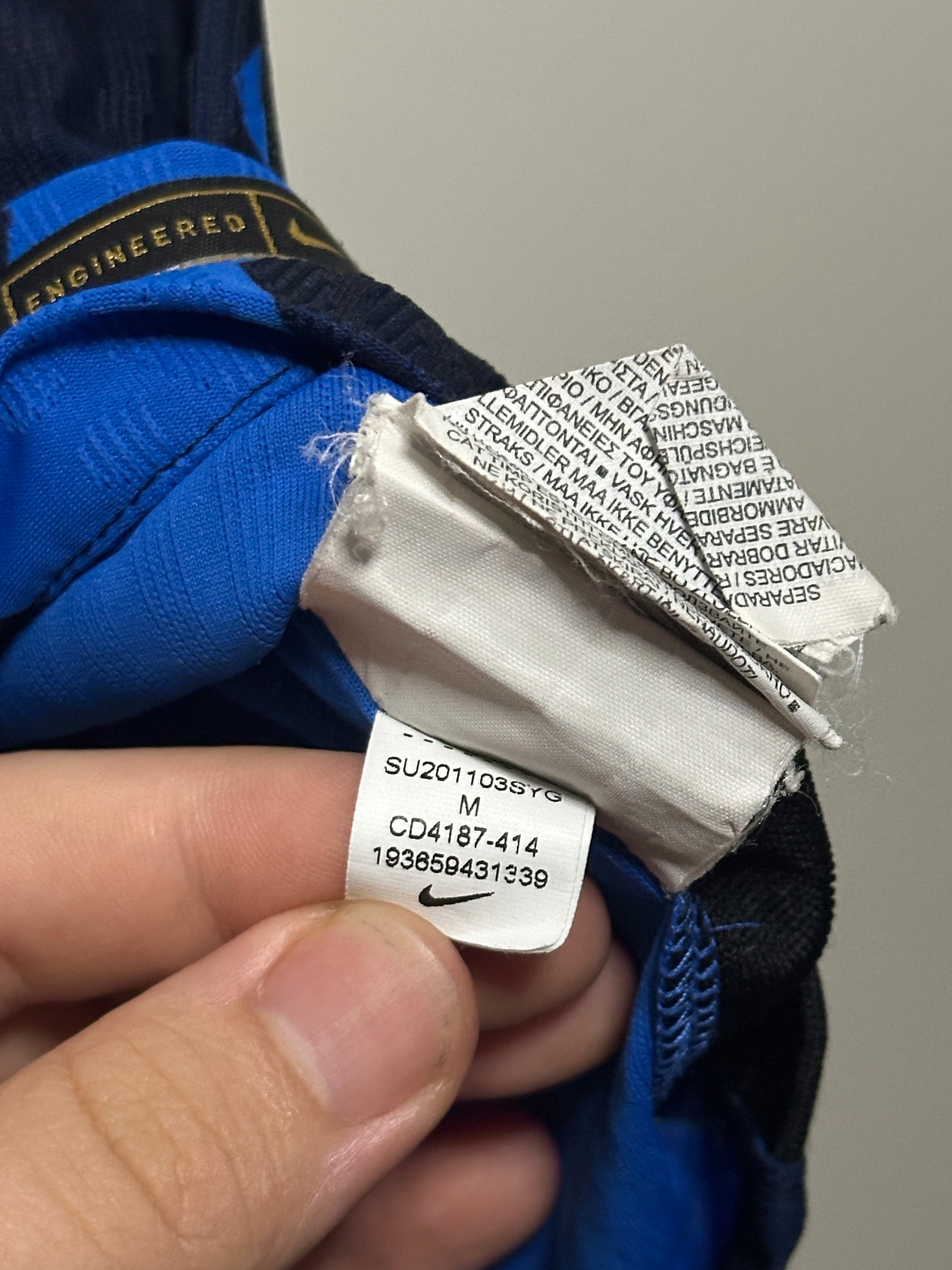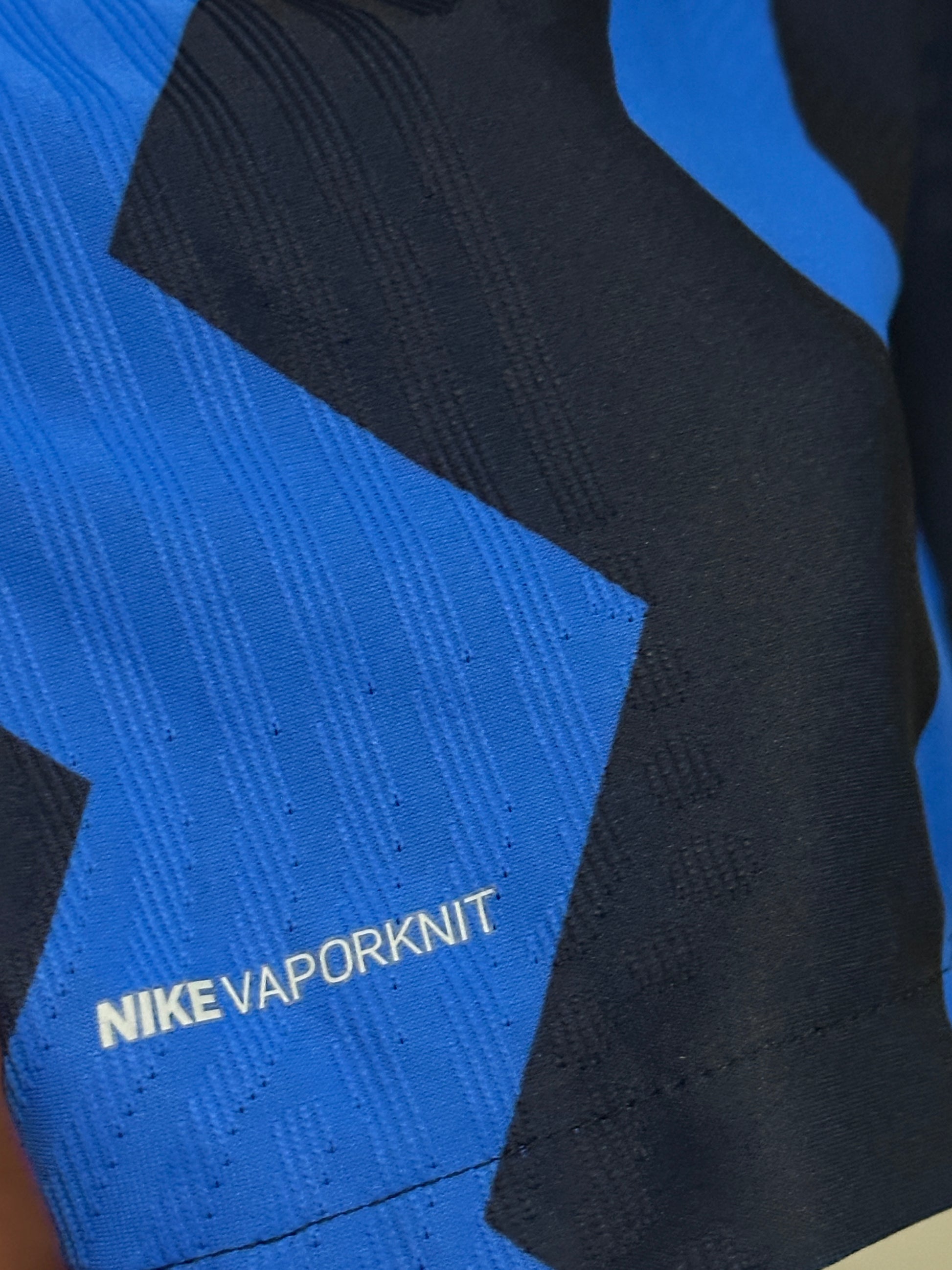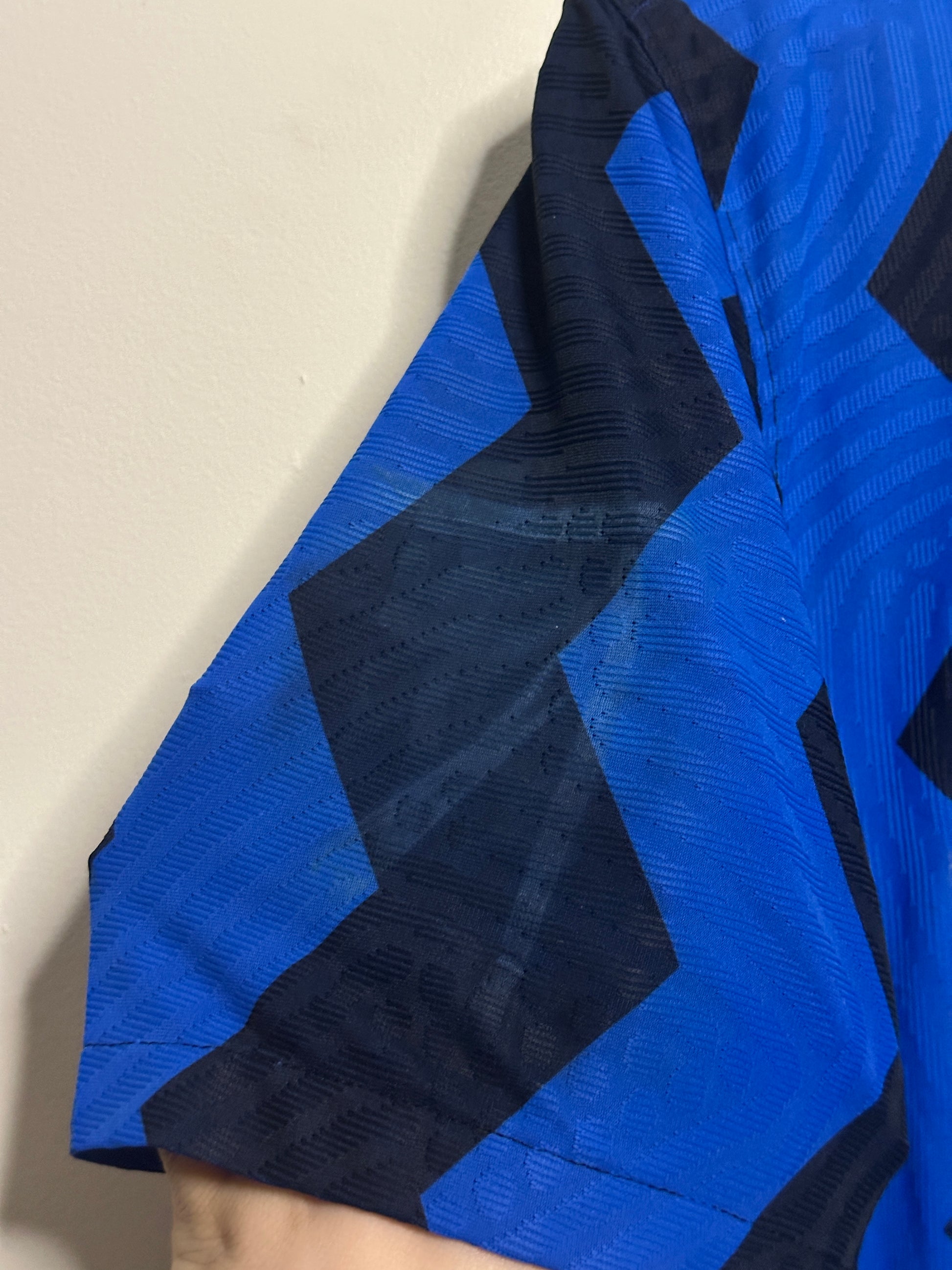 This Lautaro Martinez Inter Milan 2020-21 Vaporknit home shirt is an exceptionally rare piece featuring the advanced Vaporknit fabric designed for optimal fit and breathability. Although there are slight marks on the arm, the shirt remains in very good condition overall. A prized item for collectors and fans, it authentically represents a key season for both Lautaro Martinez and Inter Milan.