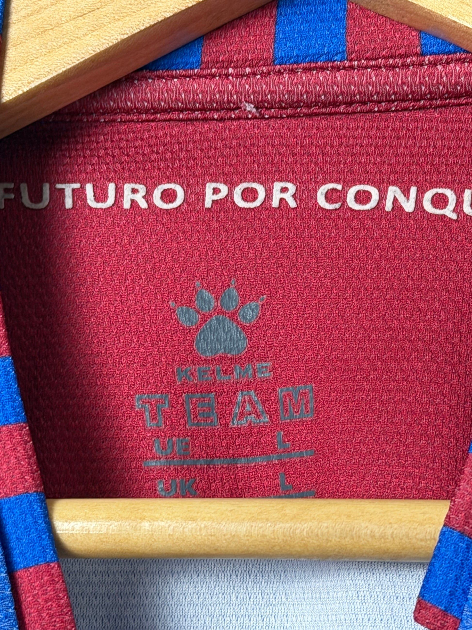 Authentic Levante UD 2013-14 home shirt by Kelme in size large. This vintage football jersey captures the essence of the club's heritage, featuring the classic design from that memorable season. In good overall condition, it's a genuine piece for collectors and supporters alike. Whether you're building a football shirt collection or reconnecting with Levante's history, this Kelme original delivers authentic club pride with timeless appeal.