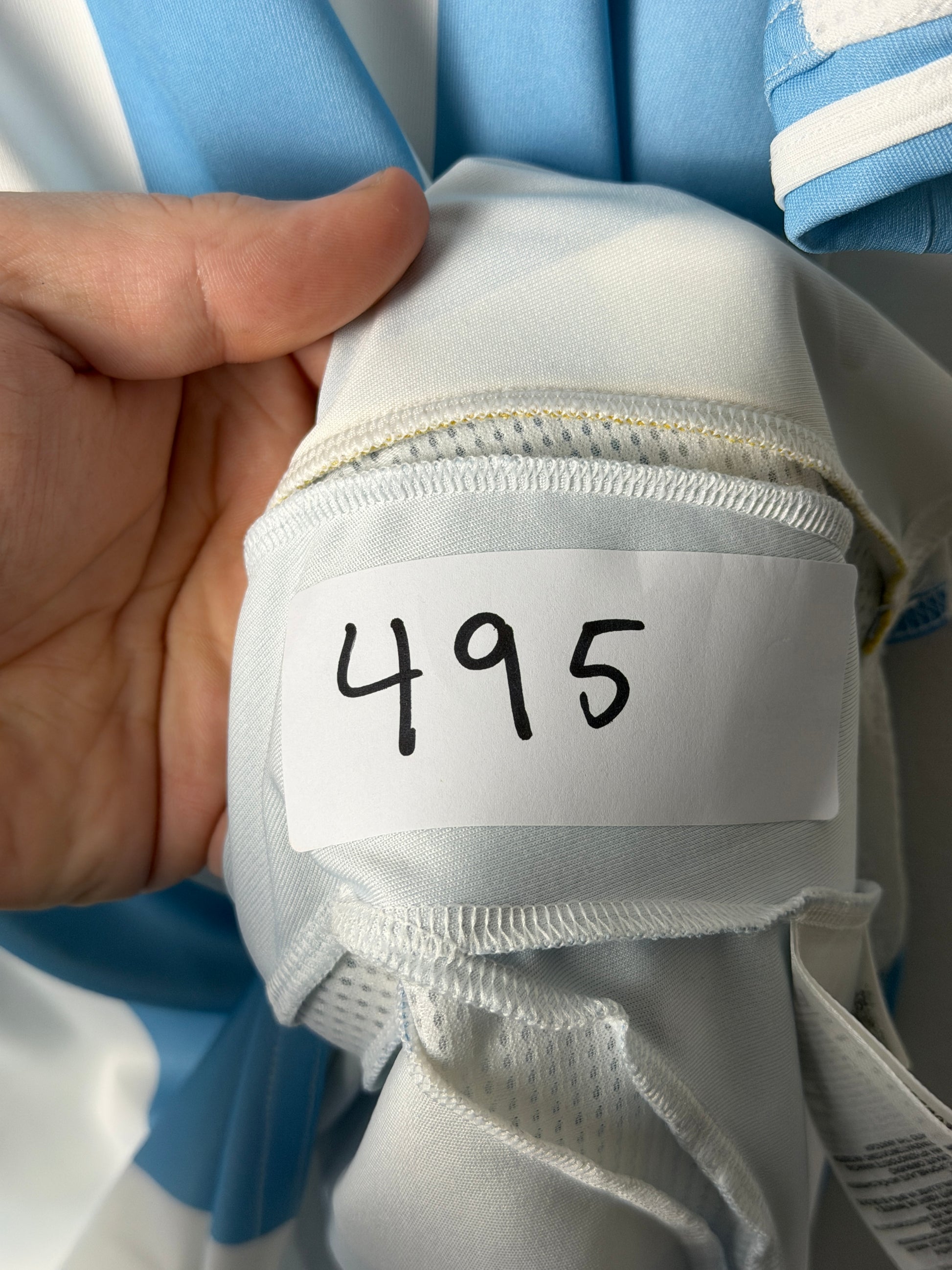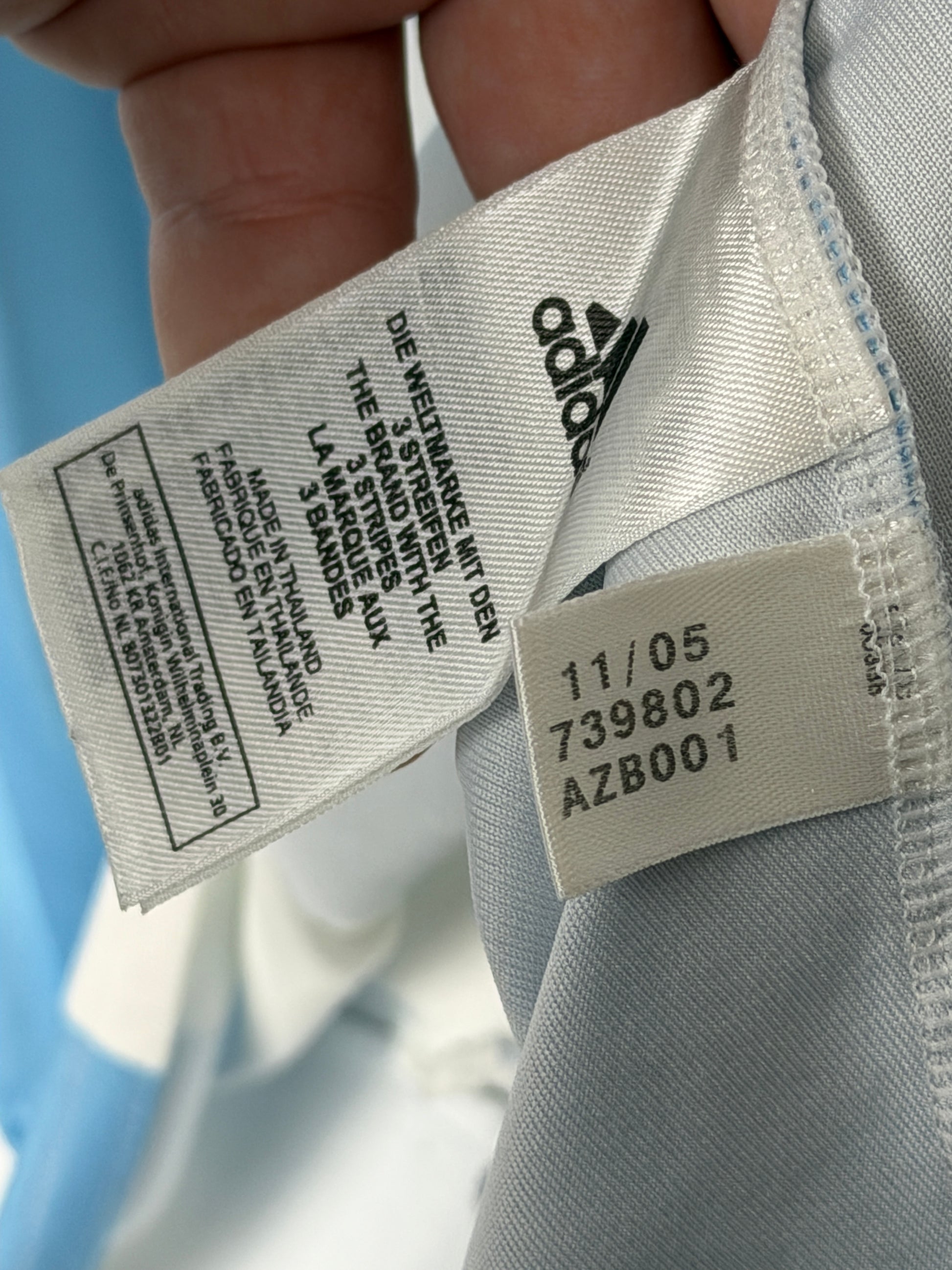 A piece of football history. This authentic Adidas Argentina home shirt from the 2006 FIFA World Cup represents Lionel Messi's first appearance on the world's biggest stage. Worn during his breakthrough tournament, this jersey captures a pivotal moment in one of sport's greatest careers. In excellent condition, this vintage kit showcases the classic Argentina blue and white stripes with Adidas craftsmanship. Size L. A must-have for collectors and Messi enthusiasts alike.