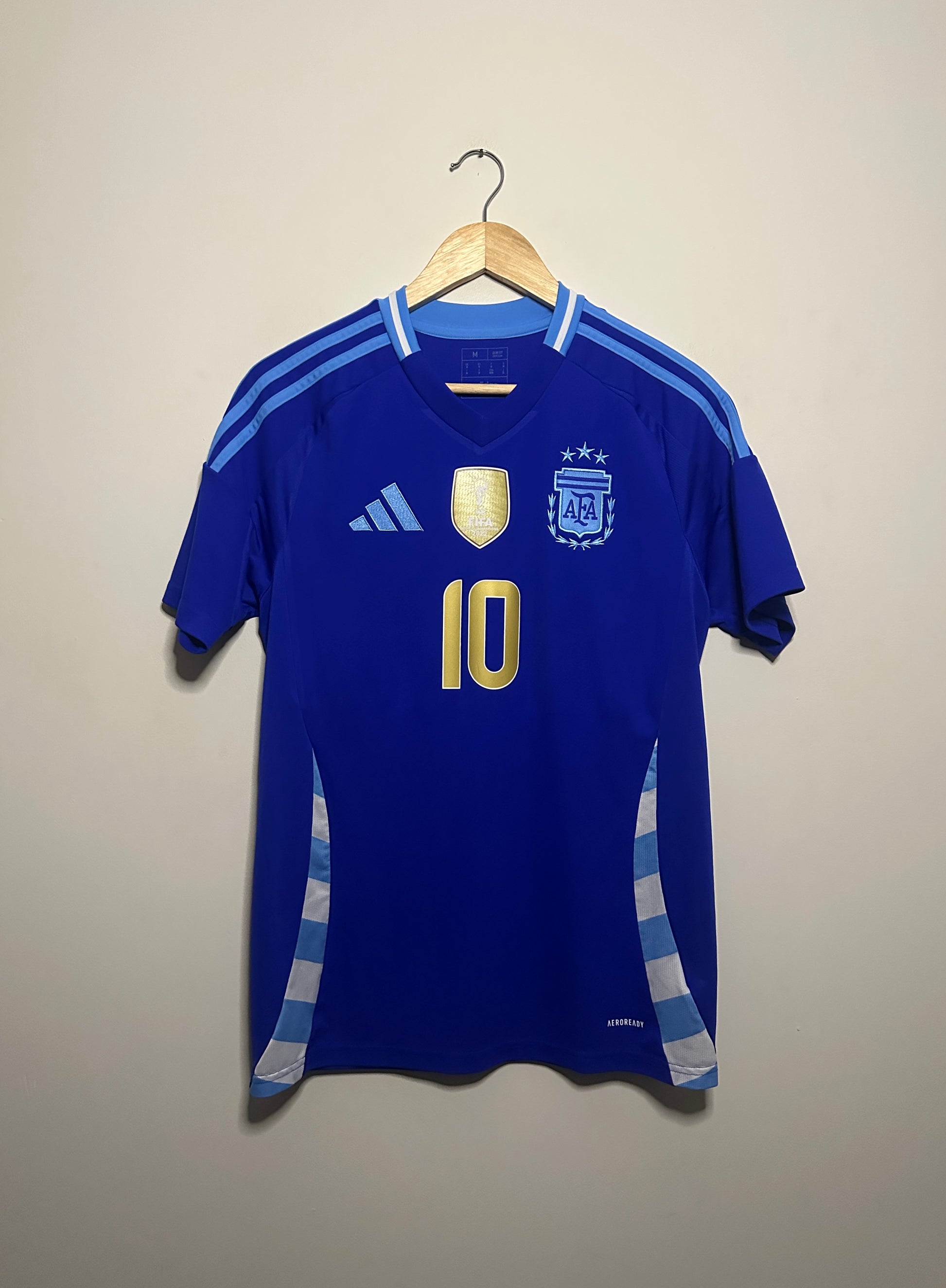 Experience authentic football heritage with this pristine Adidas Argentina away shirt in size medium. Crafted by the world's leading sportswear manufacturer, this jersey delivers exceptional quality and timeless design. Ideal for collectors seeking genuine memorabilia or supporters wanting to wear their passion with pride. The impeccable condition ensures this classic kit remains a standout piece in any football wardrobe, combining style, authenticity, and sporting prestige.