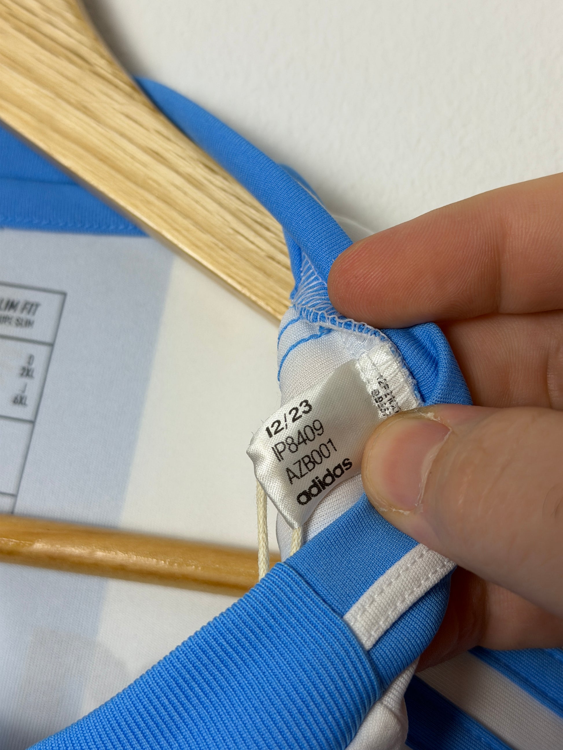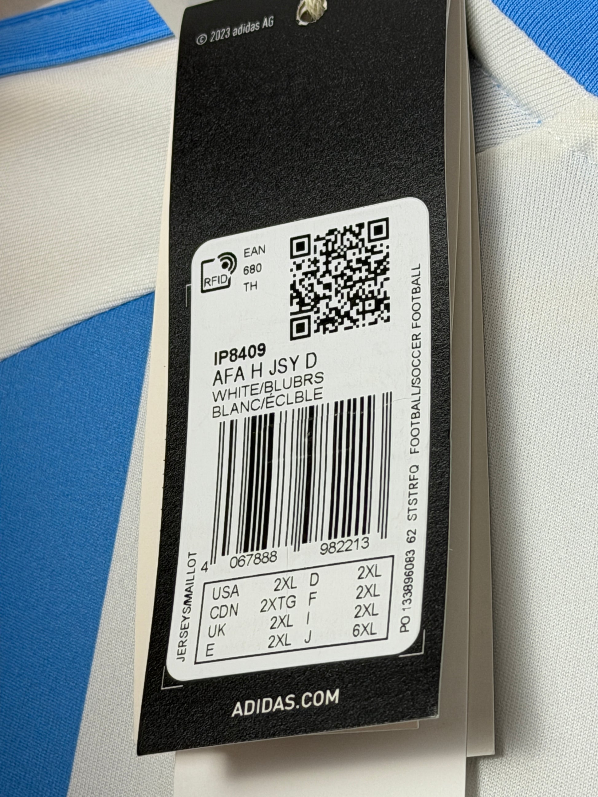 Authentic Adidas Lionel Messi Argentina 2024 home shirt in XXL, brand new with tags. This iconic jersey captures the essence of one of football's greatest players during a legendary era. Crafted with Adidas quality construction, it features the official Argentina crest and Messi's legacy. Condition is excellent—BNWT—with only a minor mark beneath the badge that's barely noticeable. A must-have for collectors and passionate fans seeking a genuine piece of football history at an exceptional value.