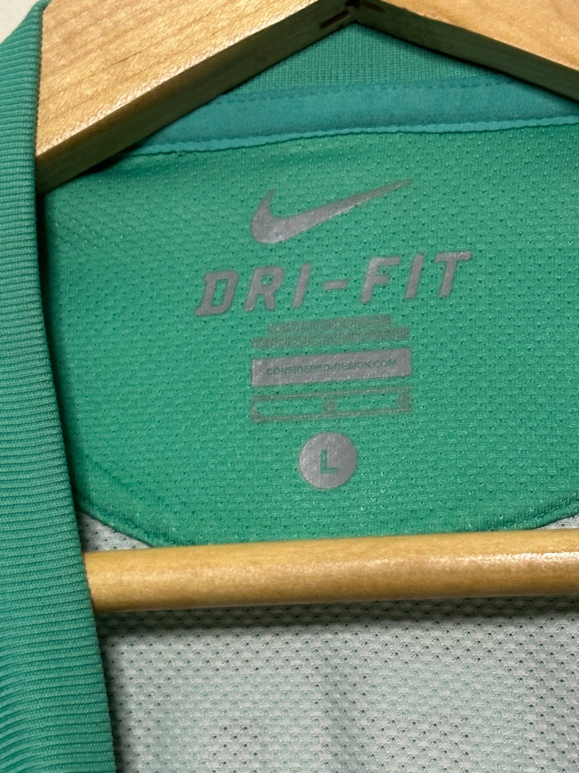 This Lionel Messi FC Barcelona 2011-12 third football shirt (L) is a coveted Champions League edition in very good condition, featuring a couple of minor pulls. It authentically represents the 2011-12 season, showcasing the club’s distinctive third kit worn during European matches. Perfect for dedicated collectors, this shirt combines historical significance with wearable quality.