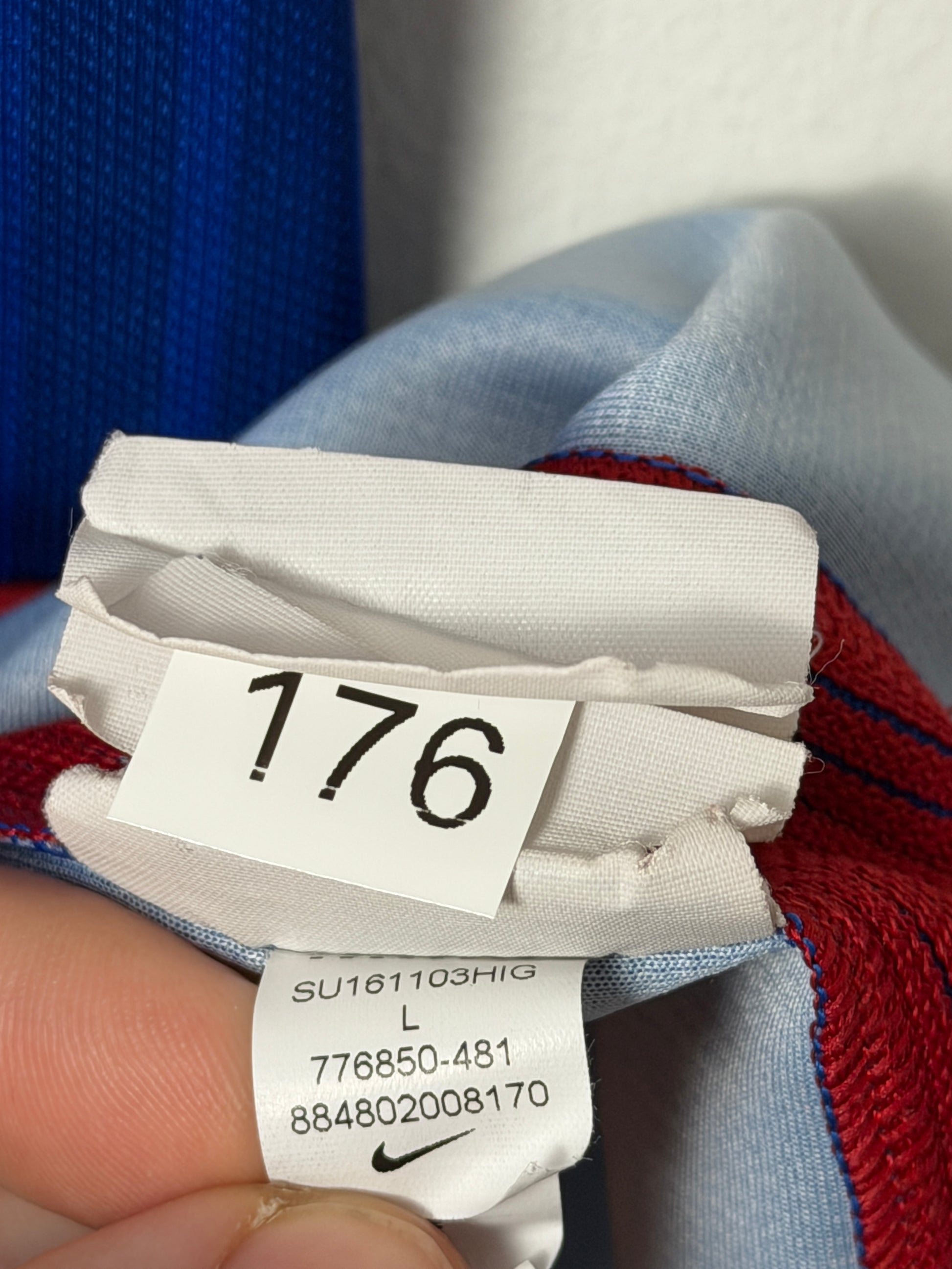 Own a piece of football history with this authentic Lionel Messi FC Barcelona 2016-17 home shirt in size large. Crafted by Nike, this iconic jersey captures one of the greatest seasons in club football. In very good condition, it's perfect for collectors and devoted fans alike. Display your passion for Messi and Barcelona with this timeless classic that celebrates an unforgettable era at Camp Nou.