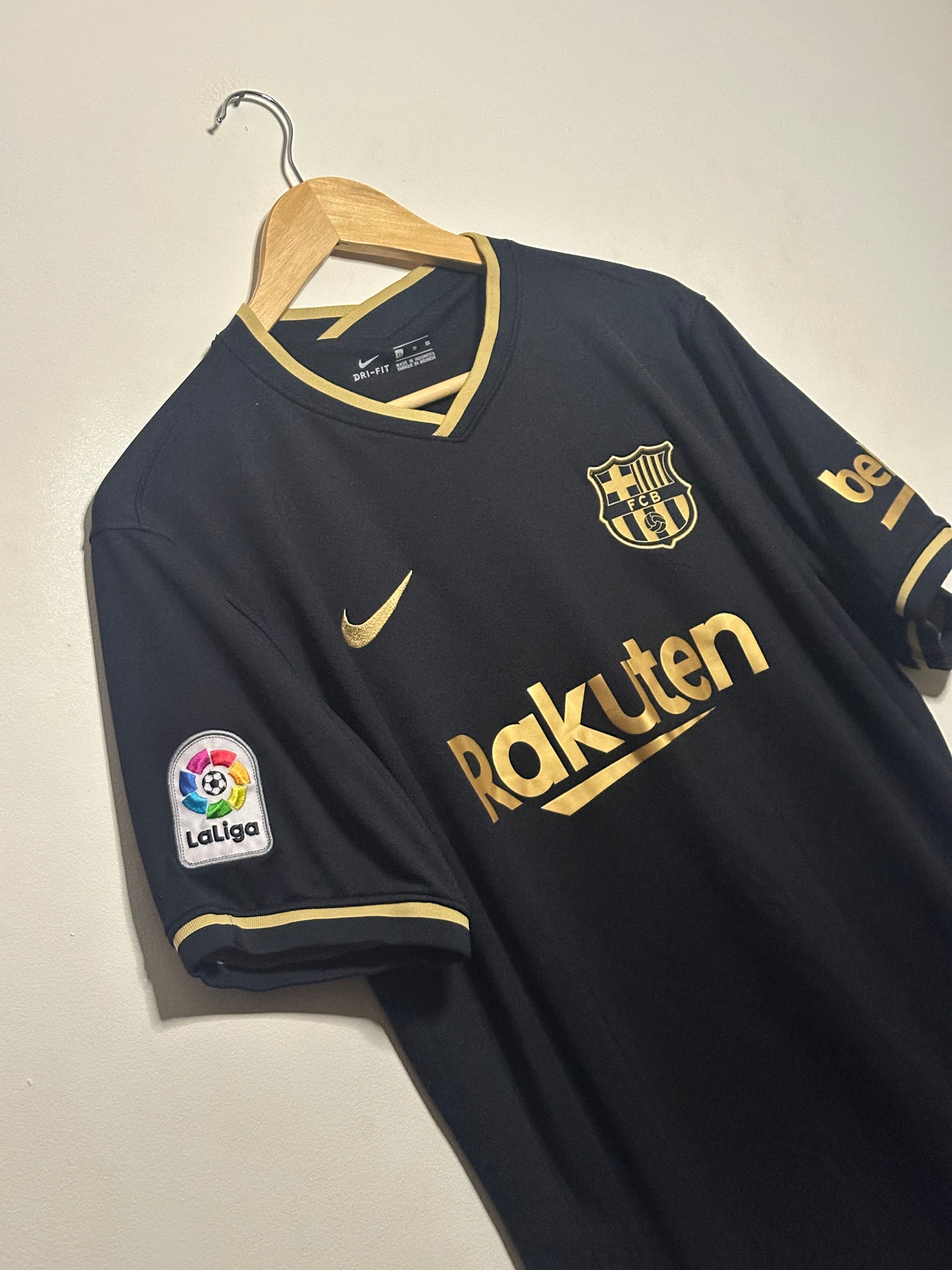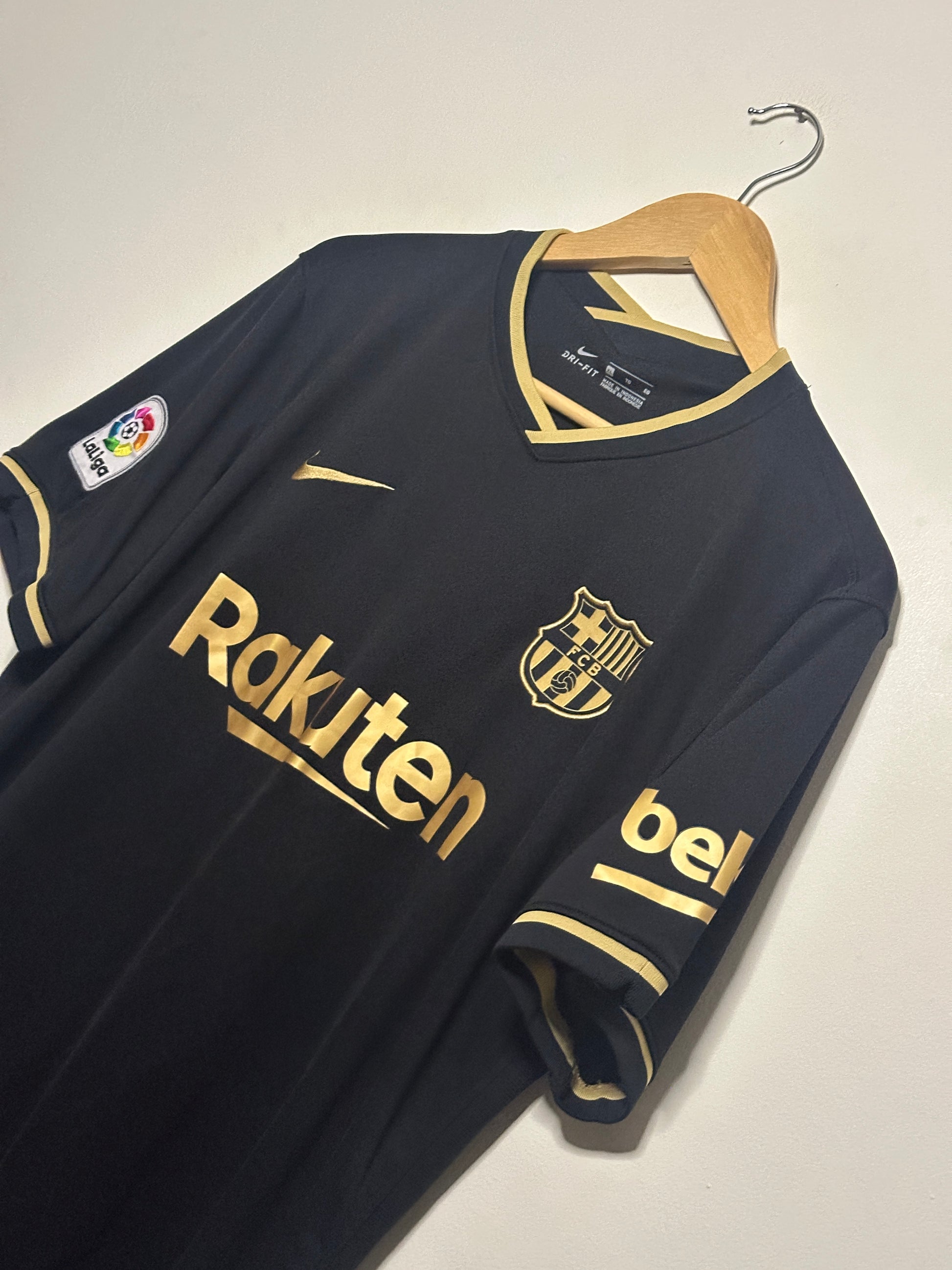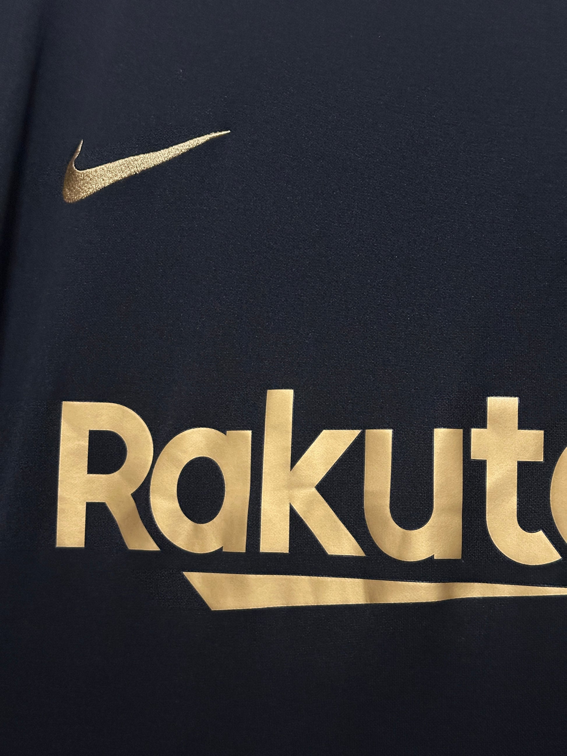 Lionel Messi's final Barcelona chapter, captured in this extraordinary Nike away shirt from the 2020-21 season. This is a piece of football history—a stunning, exceptionally rare garment that commemorates one of sport's greatest players in his last campaign at the club. The iconic blaugrana design meets Nike's premium craftsmanship, creating a collector's item with genuine wow factor. Own a tangible memory of a legendary era.