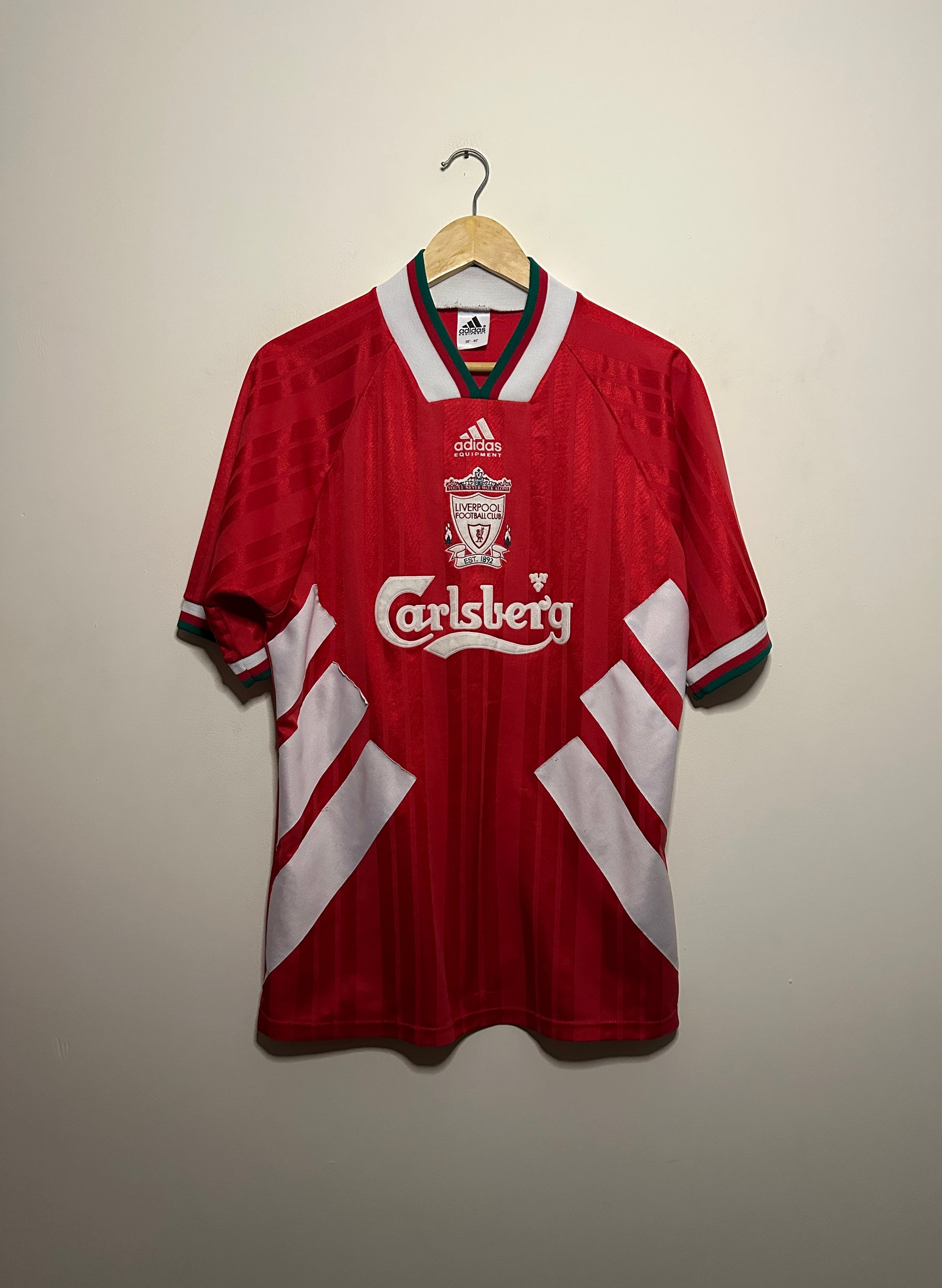 Relive a golden era of Anfield glory with this authentic Liverpool FC 1993-95 home shirt. This iconic Adidas vintage piece captures the essence of the club's legendary period, featuring the classic red design that defined a generation of supporters. In very good condition, it's a treasured collectible for any devoted Red or serious vintage football enthusiast. Whether you're displaying it proudly or adding to your collection, this medium-sized gem represents genuine football heritage that transcends time.
