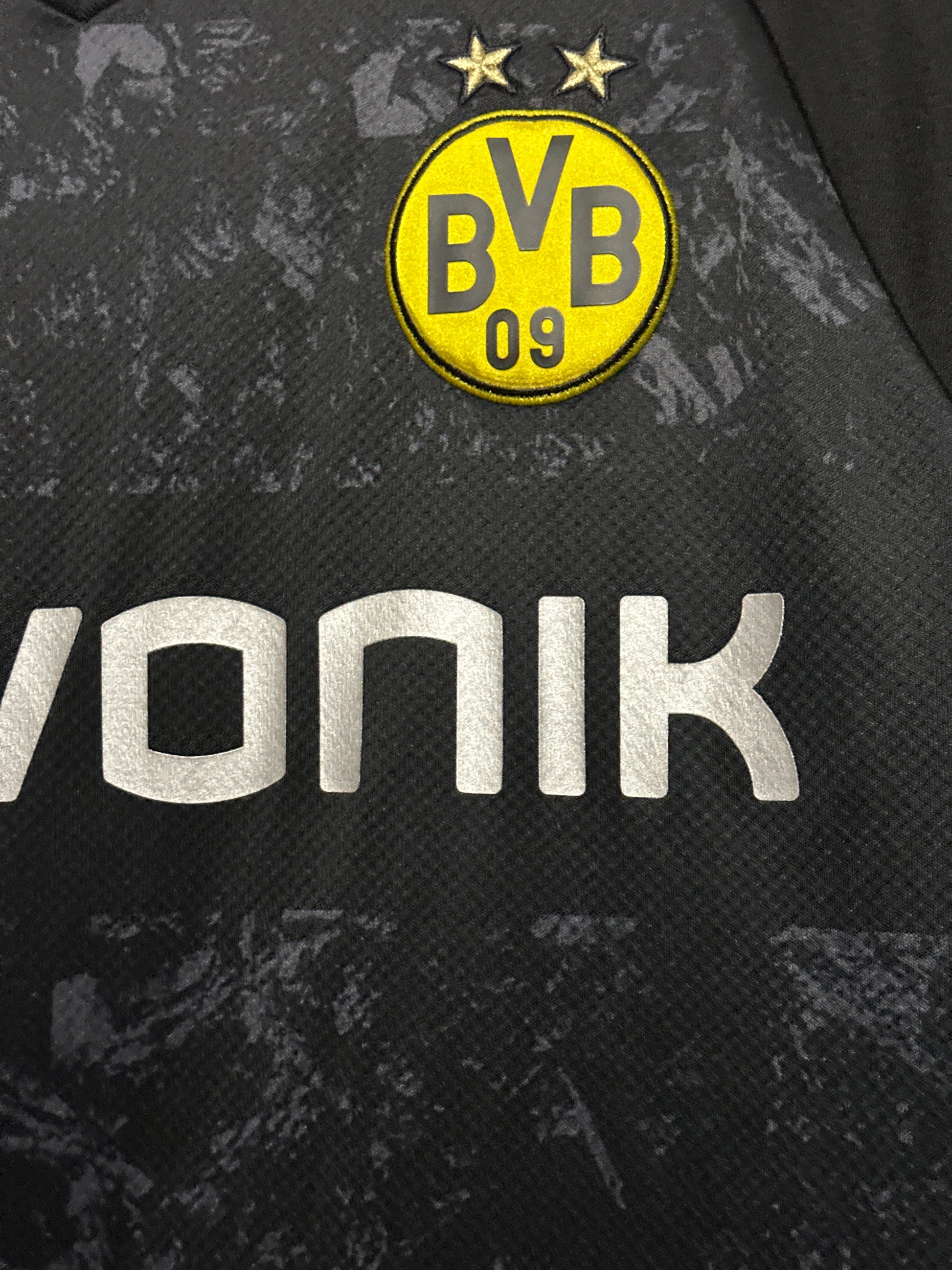 This Marco Reus Borussia Dortmund 2019-20 away football shirt in size L is a rare find in excellent condition. Crafted for fans and collectors alike, it showcases authentic design details from that season, making it a valuable addition to any football memorabilia collection. Its pristine state ensures it retains both aesthetic appeal and potential long-term value.