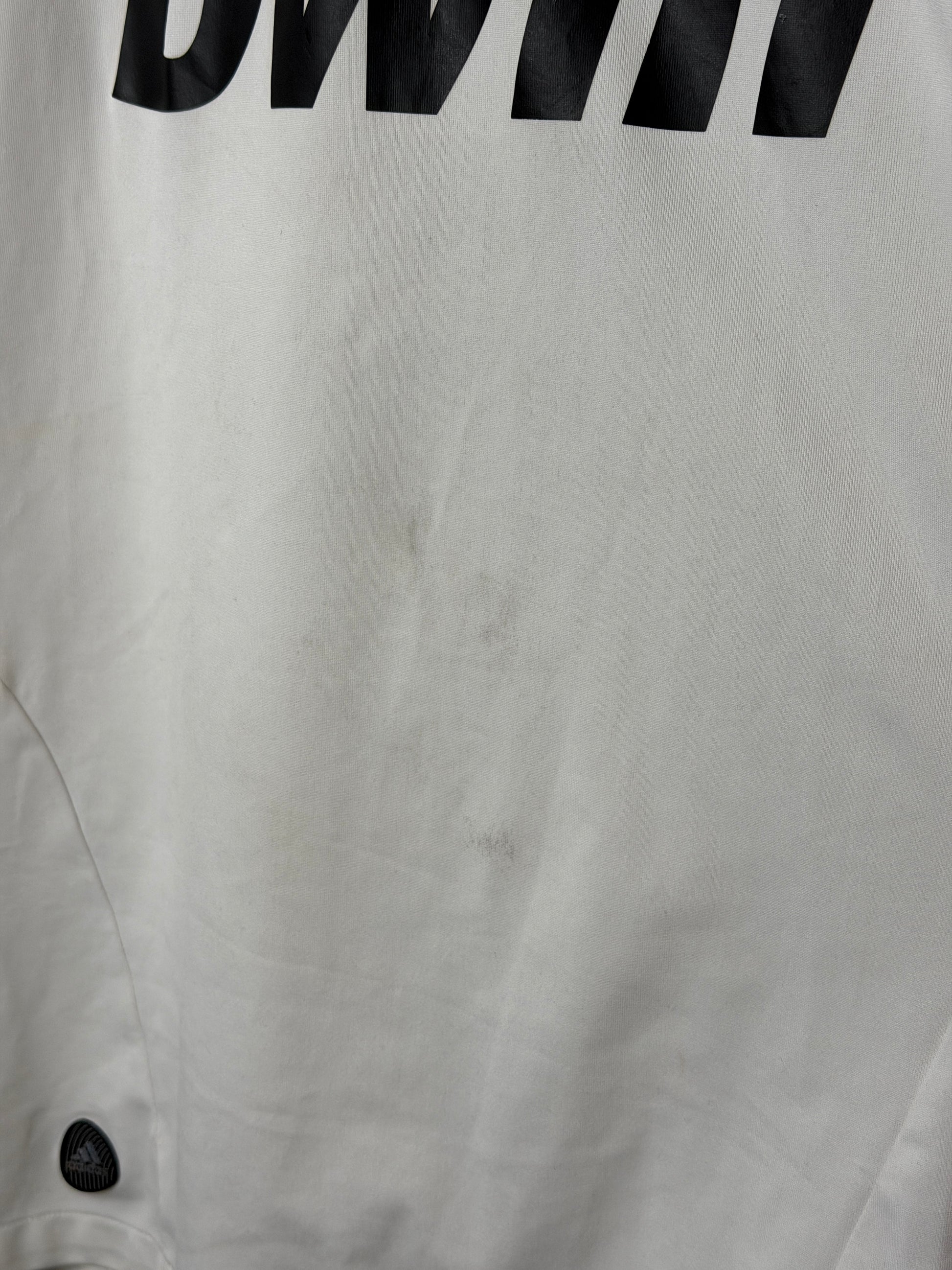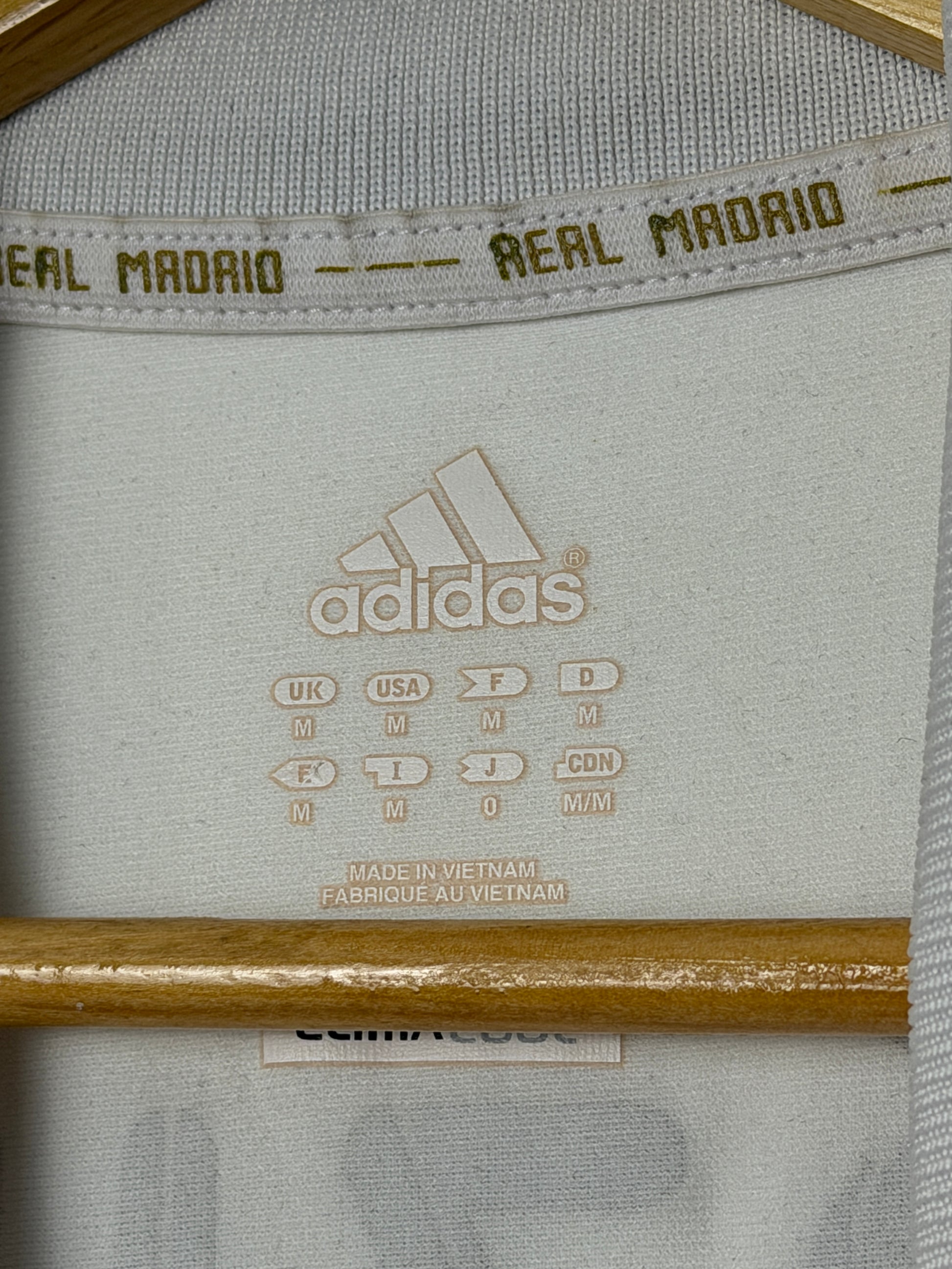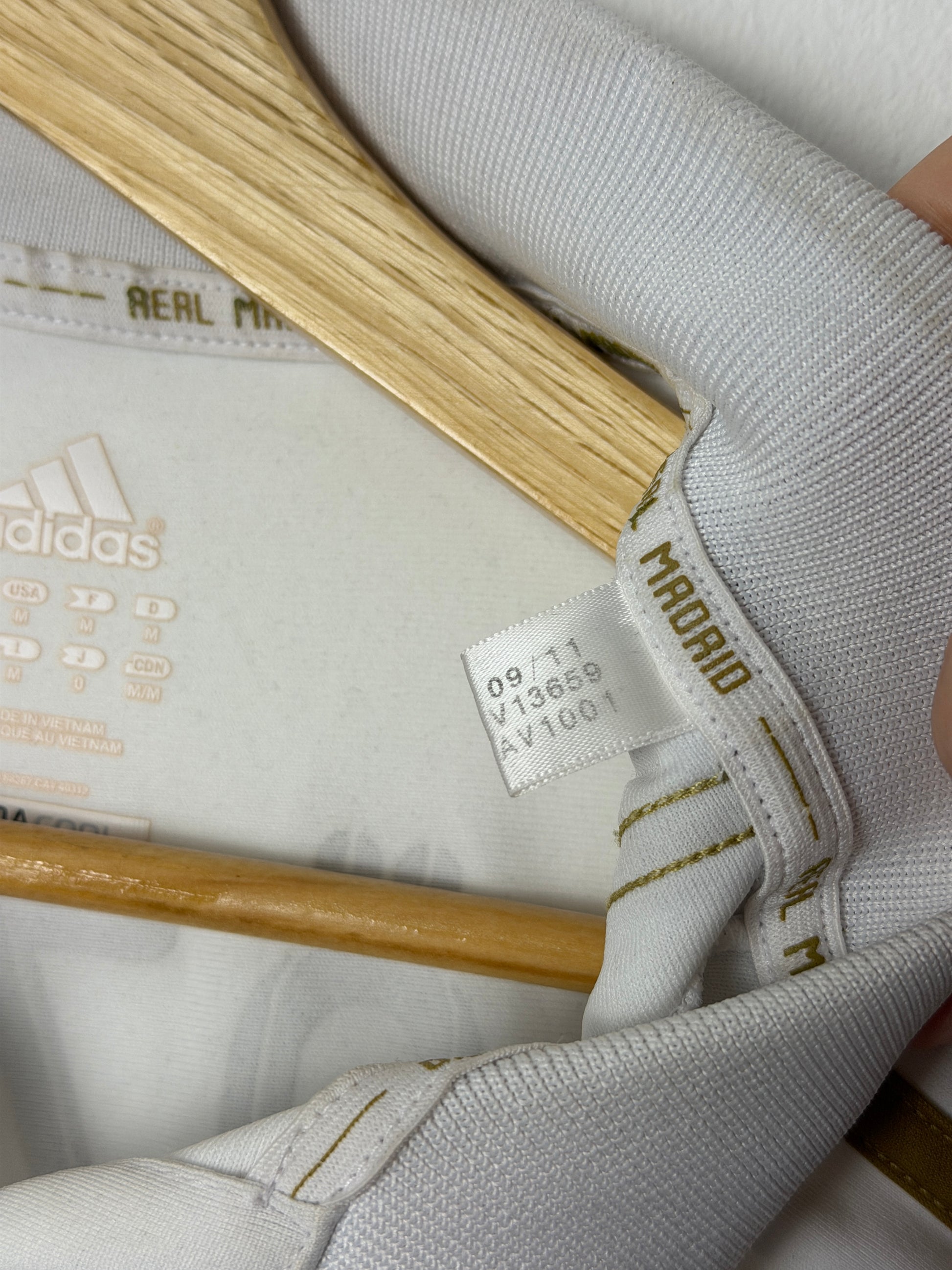 Authentic Adidas Real Madrid home shirt from the 2011-12 season, worn by Mesut Özil. This classic jersey captures a memorable era for Los Blancos, featuring the iconic white design with signature Adidas craftsmanship. Size M. In good condition with minor marks visible in photos, adding character to this vintage piece. A must-have for collectors and Real Madrid supporters seeking genuine match-worn memorabilia from one of football's greatest midfielders.