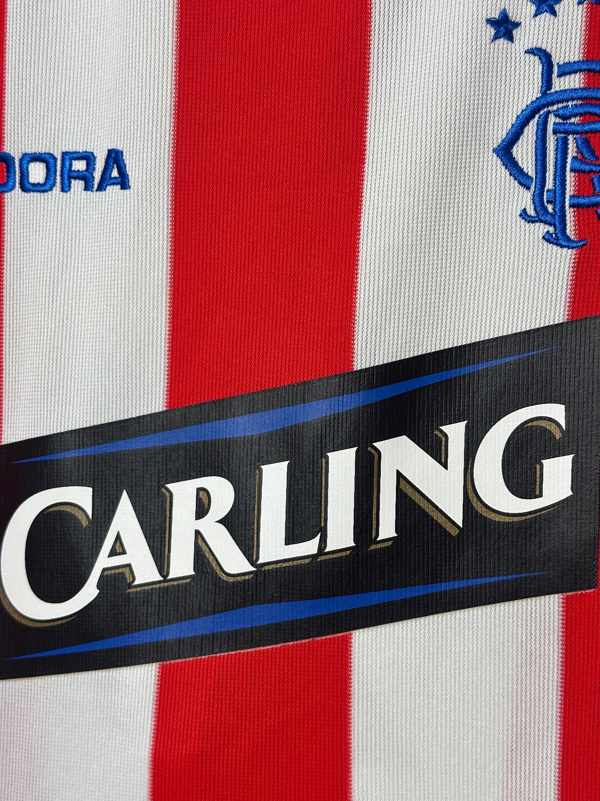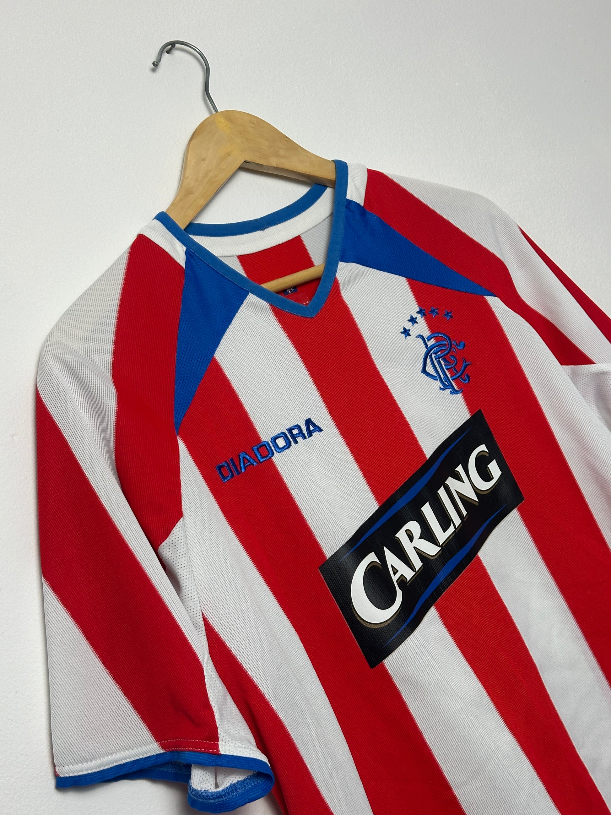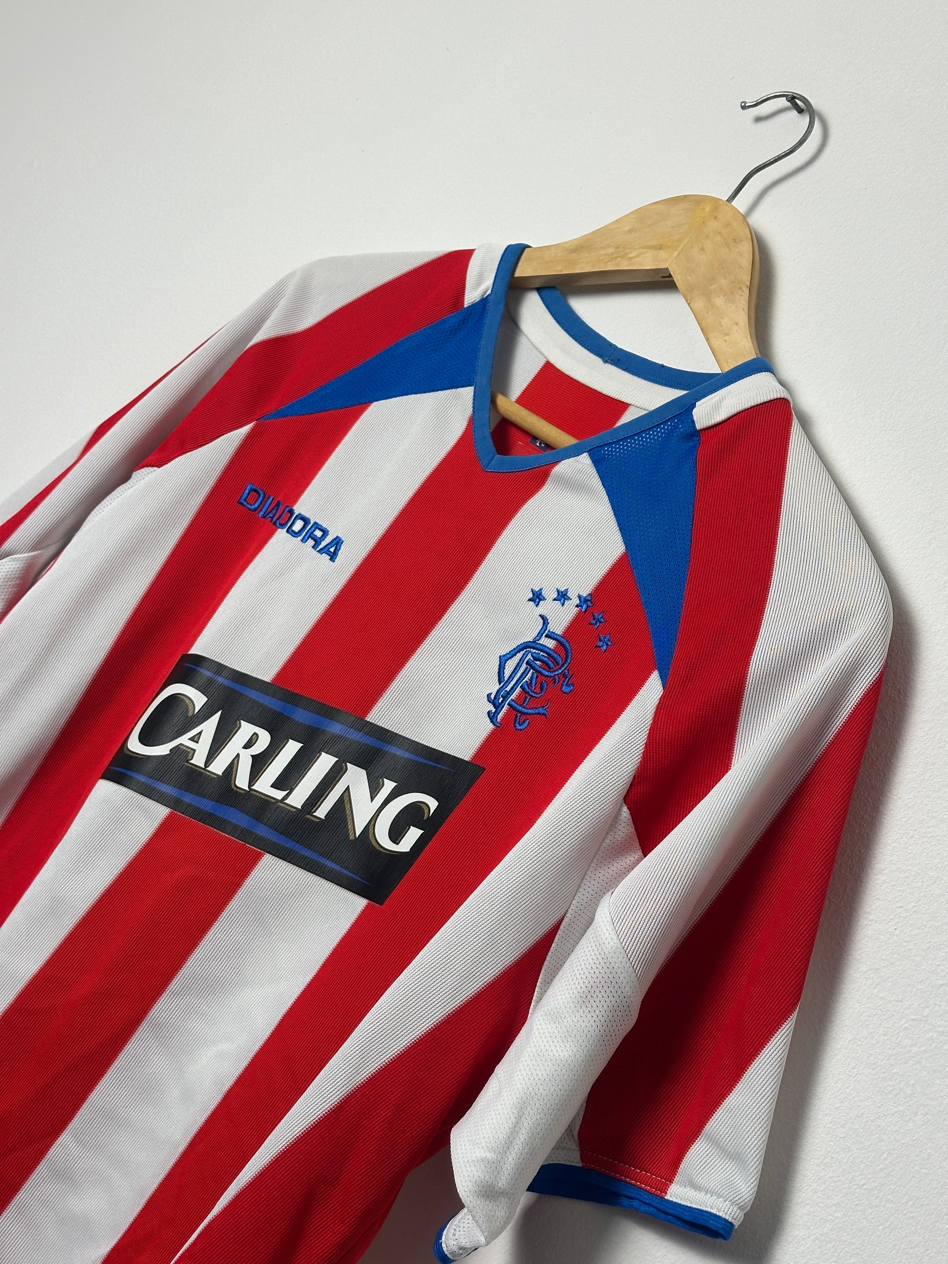 Mikel Arteta's Rangers FC away shirt from the 2003-04 season, expertly crafted by Diadora. This medium-sized piece of football history is in very good condition, making it an exceptional find for collectors and fans alike. The authentic design captures the era's distinctive style, while Diadora's quality construction ensures durability. Whether you're building a vintage collection or seeking a rare match-worn era garment, this shirt represents genuine football heritage at its finest.