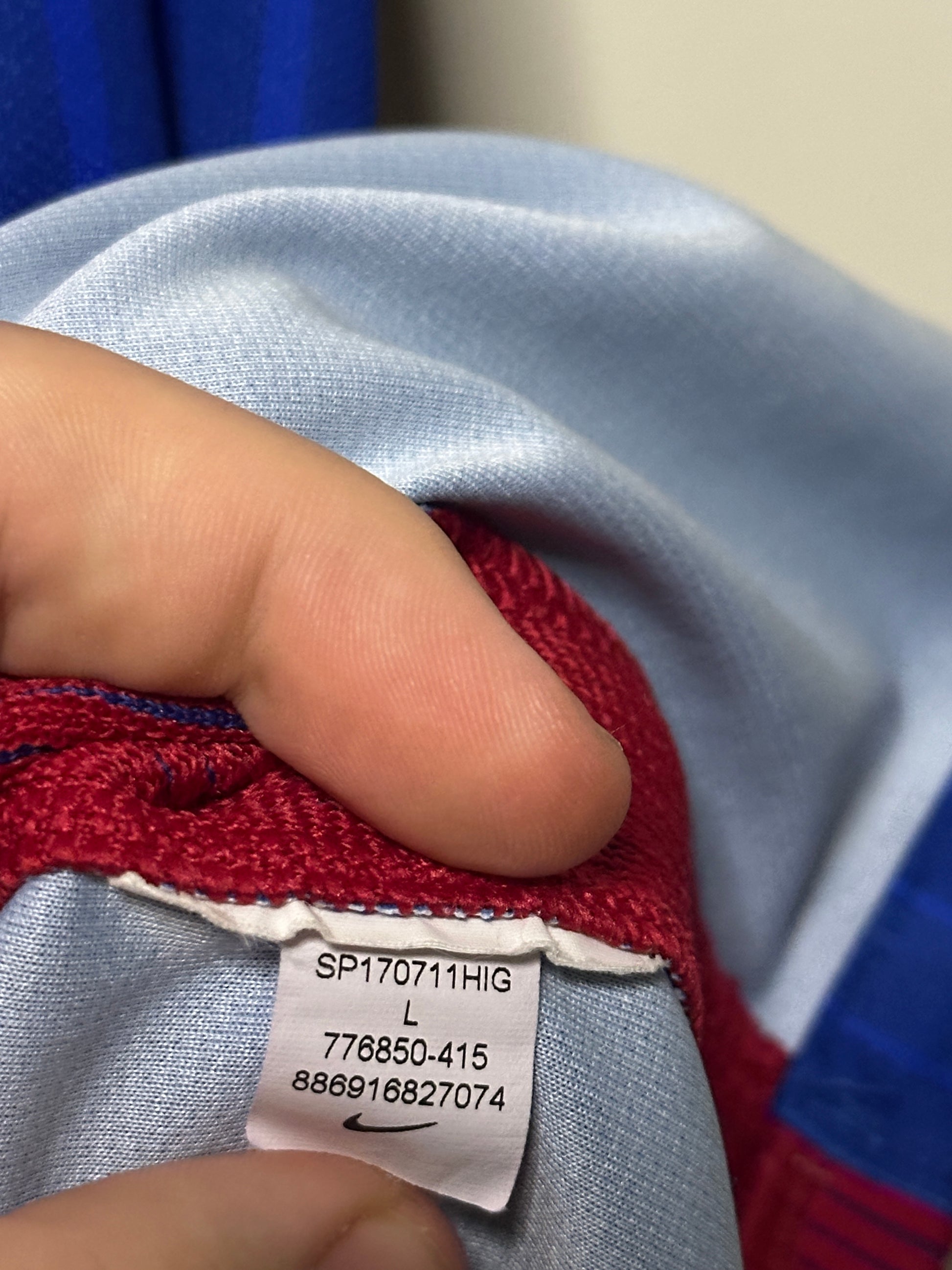 This Neymar JR FC Barcelona 2016-17 home shirt, size large, embodies a timeless football classic. Crafted with authentic detailing from the iconic season, it offers a perfect fit alongside excellent condition. Ideal for collectors or fans wanting to celebrate a legendary era with a shirt that combines style, heritage, and enduring quality.