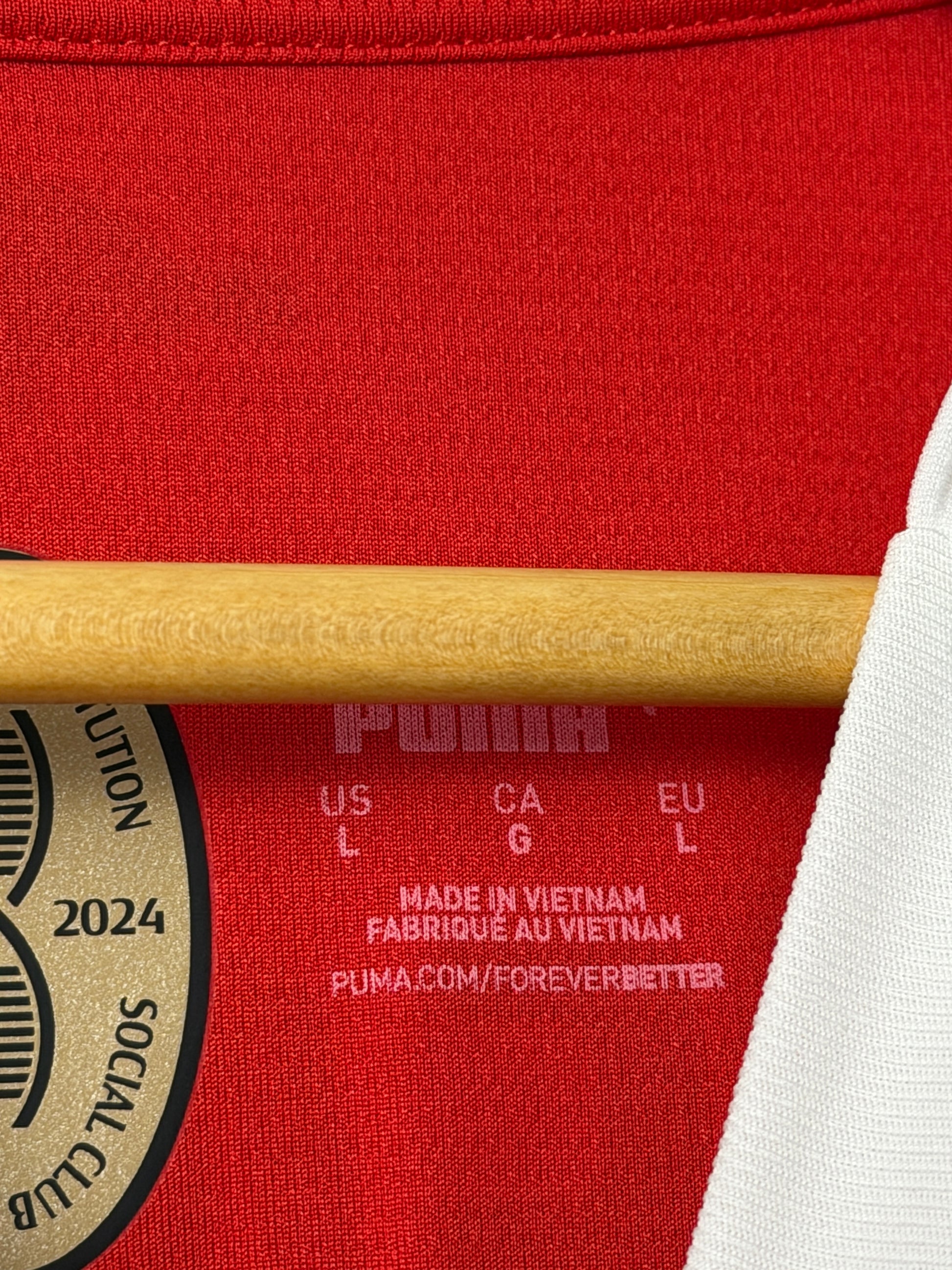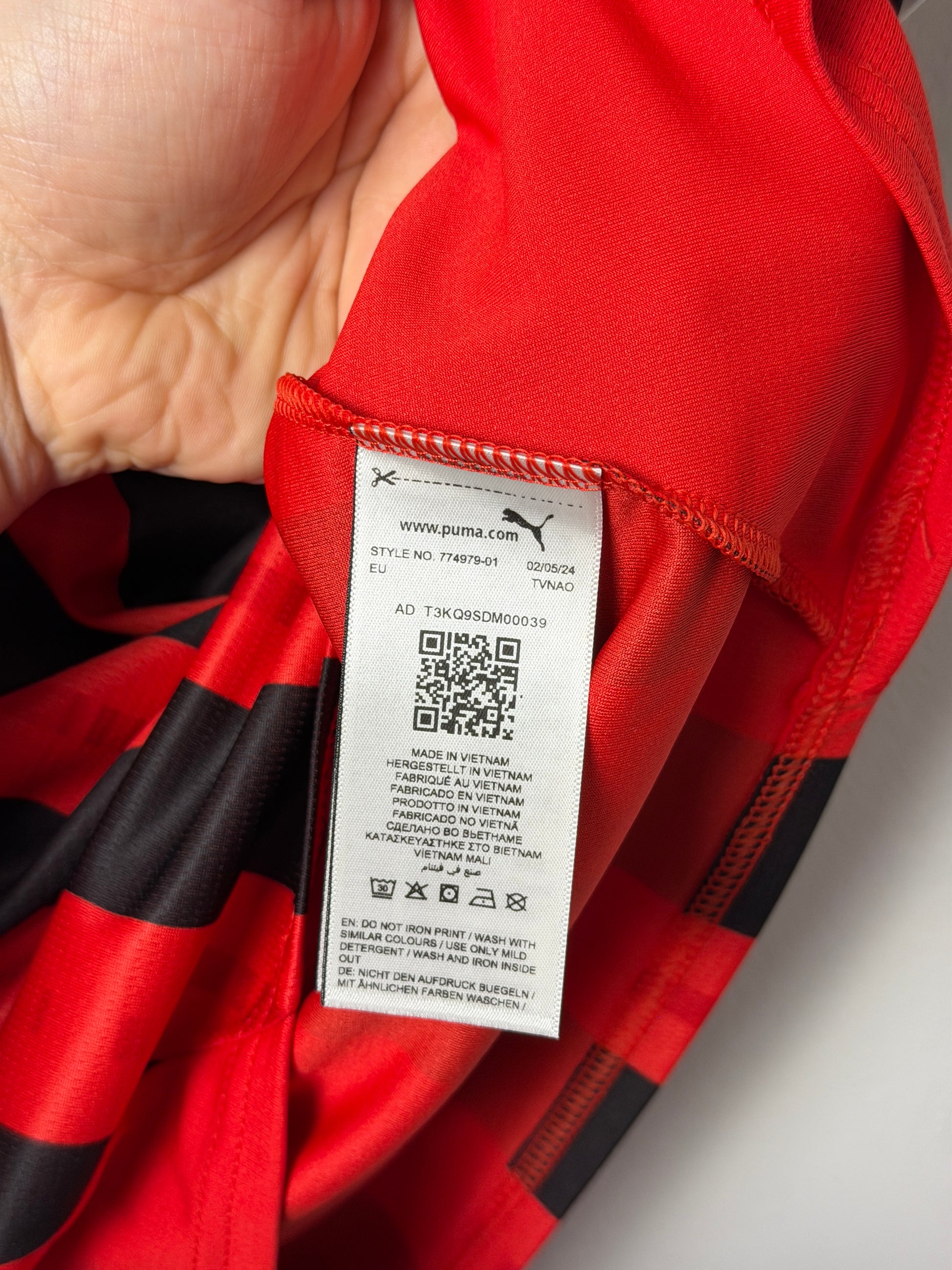 Authentic Puma-crafted AC Milan home shirt from the 2024-25 season, featuring Rafa Leao's iconic number. Brand new with tags, this premium football jersey captures the essence of San Siro's legendary red and black stripes. Perfect for dedicated Rossoneri supporters and collectors alike. The size L offers a classic fit ideal for match days or casual wear. Own a piece of AC Milan's current campaign with this officially produced Puma garment in pristine condition.