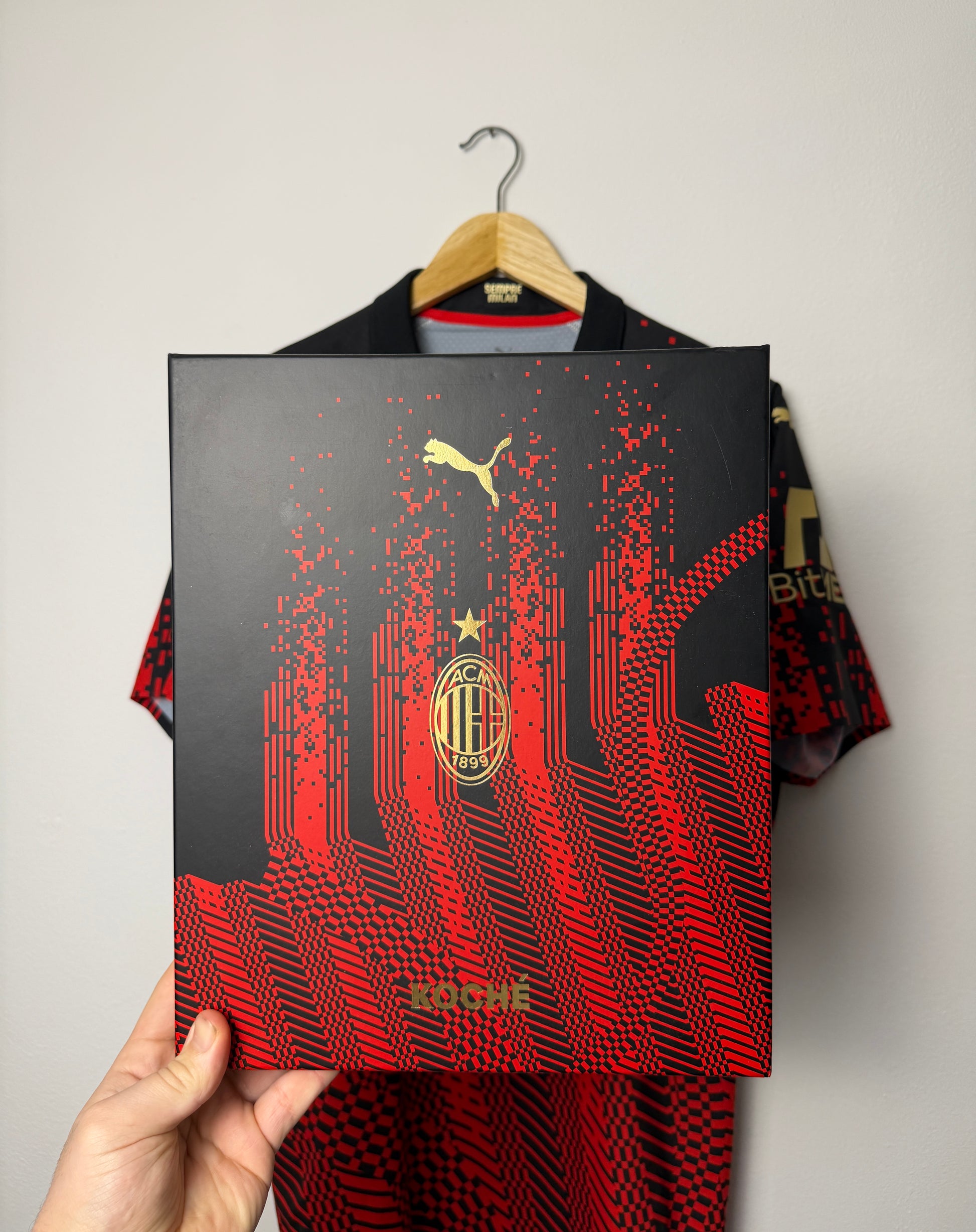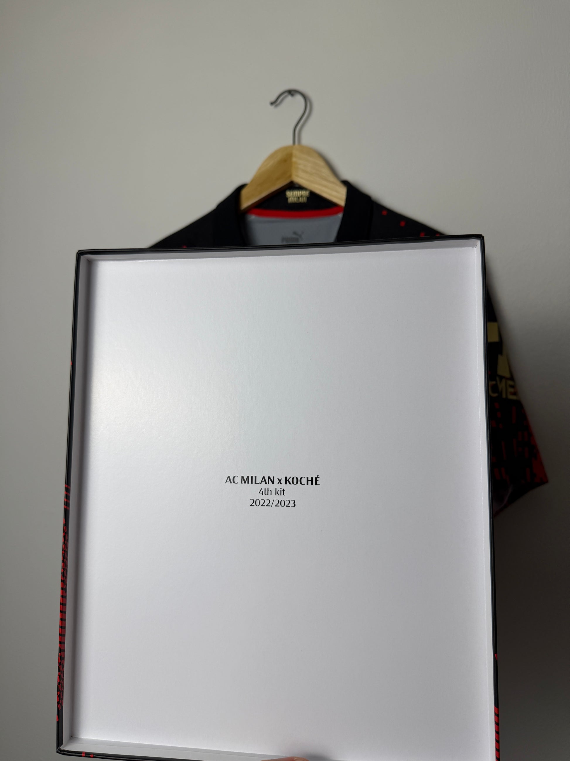 Secure this extraordinary Rafa Leao AC Milan x Koche 2022-23 Fourth Football Shirt in size L – a museum-quality collector's piece that merges elite sportswear with luxury fashion. This special boxed Ultraweave edition represents a rare collaboration between Puma and prestigious designer Koche, creating a shirt that transcends typical football merchandise. Pristine condition with original tags intact, it's the kind of limited release that appreciates in value among serious enthusiasts. Whether you're honouring Leao's brilliance or investing in exclusive football heritage, this is an unmissable opportunity to own something genuinely scarce and coveted.