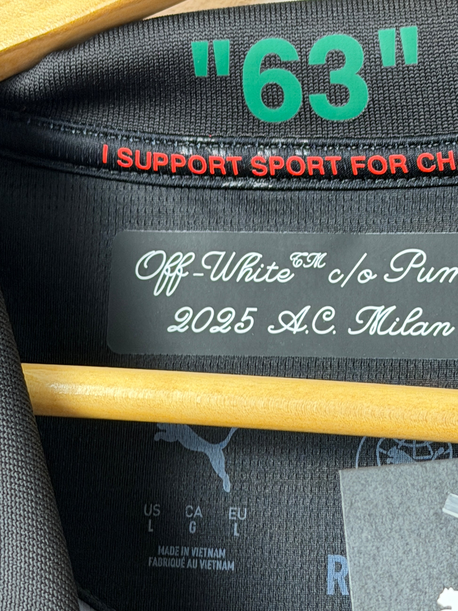 Rafa Leao AC Milan x Off White fourth football shirt in pristine BNWT condition. This rare collaboration between Puma and Off White represents a standout piece for serious collectors and football enthusiasts alike. The fourth kit design showcases the distinctive Off White aesthetic merged with AC Milan's iconic heritage, making it a highly sought-after release. Size L. A genuine collector's item that captures a unique moment in football fashion history.
