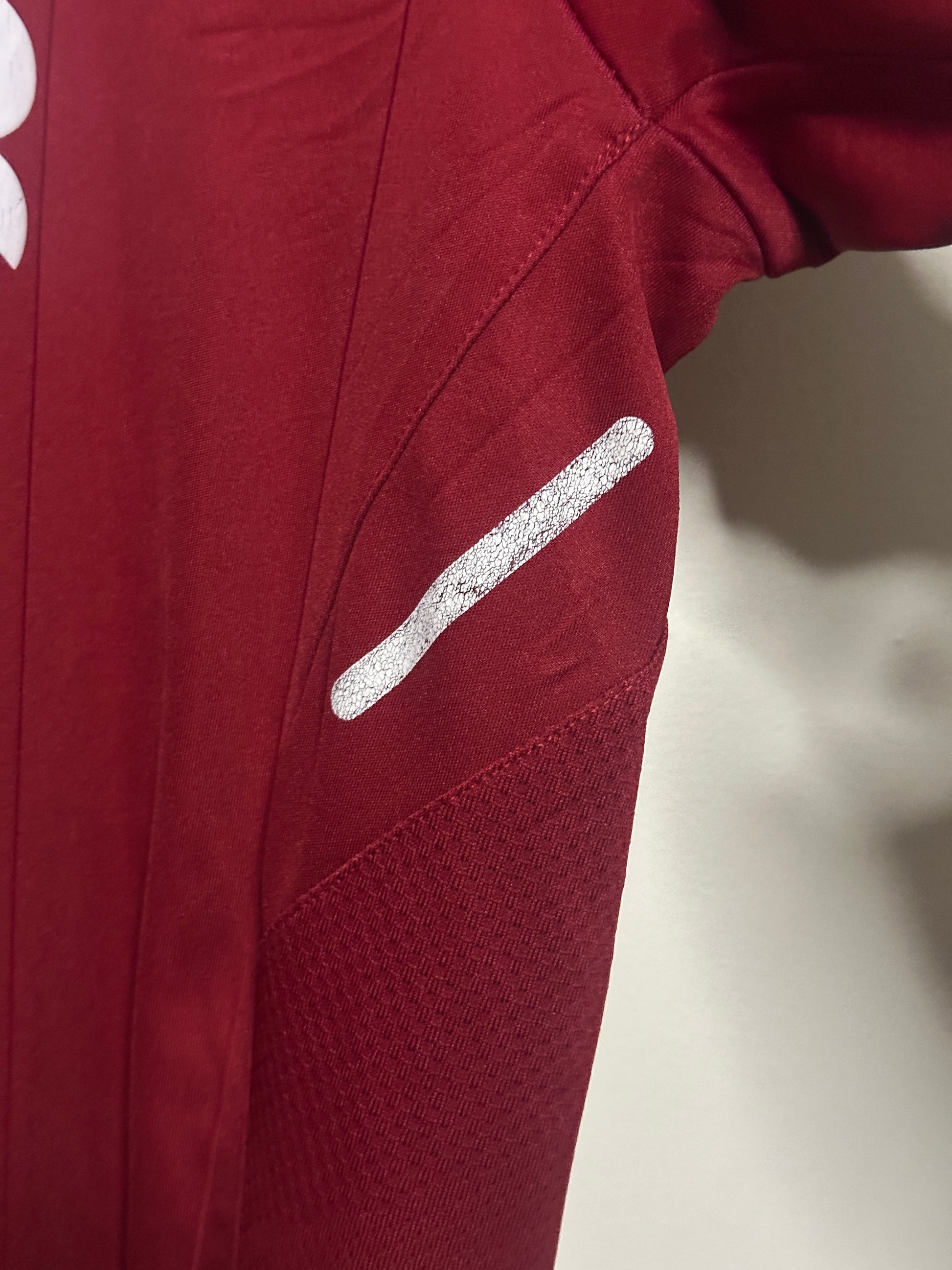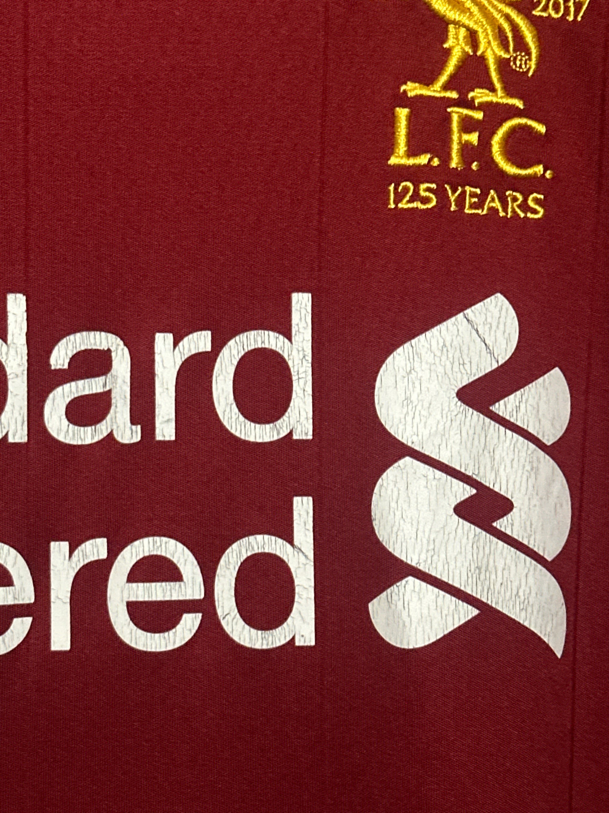 This Roberto Firmino Liverpool FC 2017-18 home football shirt in medium is an authentic piece from a memorable season. Crafted from high-quality breathable fabric, it offers comfort and durability both on and off the pitch. Please note, the shirt shows some minor flaws consistent with good condition, as photographed, adding to its vintage appeal for collectors and fans.