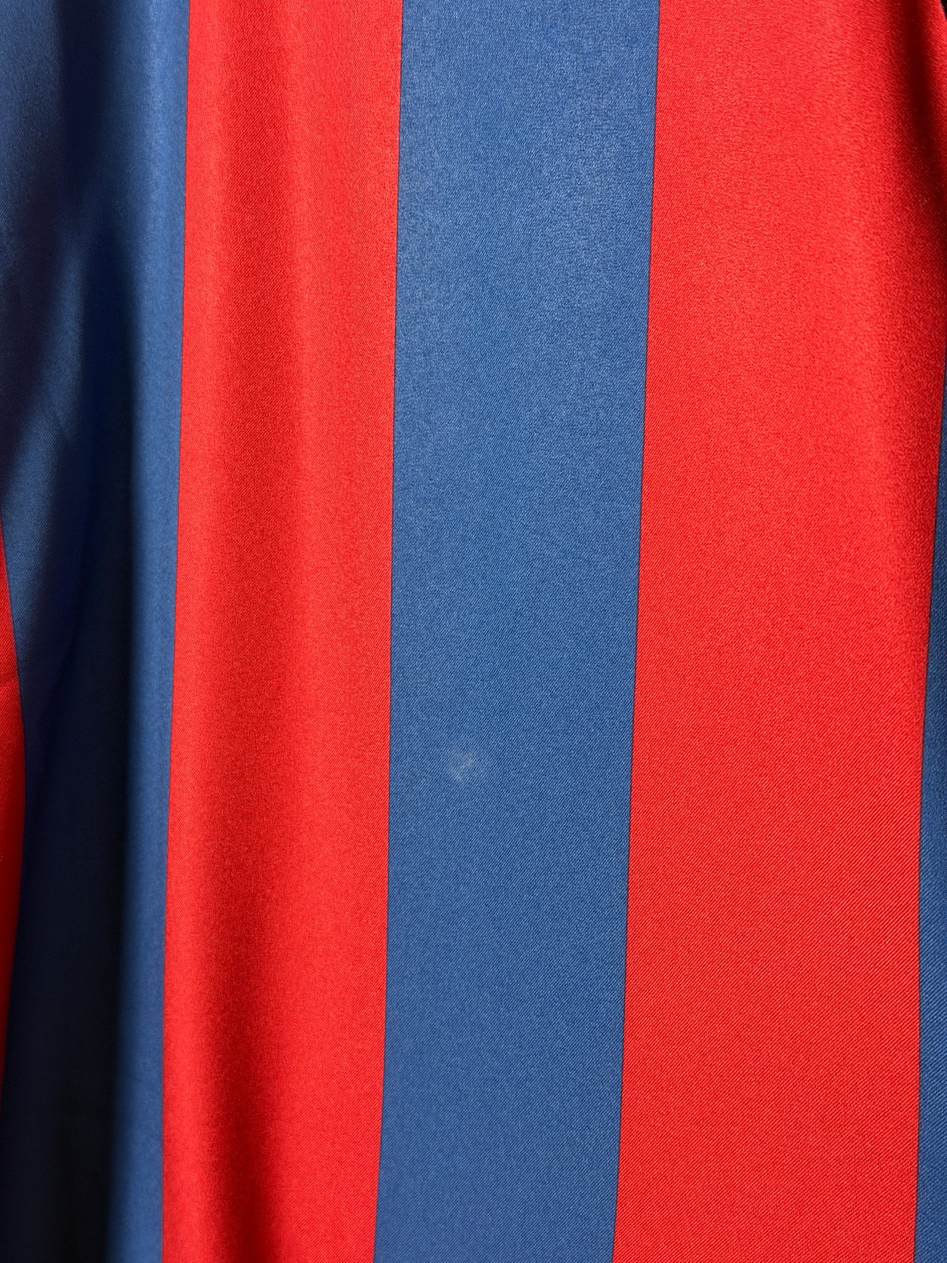 This iconic FC Barcelona home shirt from the legendary 2005-06 season captures a defining era of football history. Crafted by Nike, it features the classic garnet and blue design that defined one of the club's most memorable campaigns. In excellent condition with only a small mark to the front, this XL piece is a must-have for collectors and Ronaldinho admirers alike. Own a piece of footballing brilliance from one of the sport's greatest entertainers.