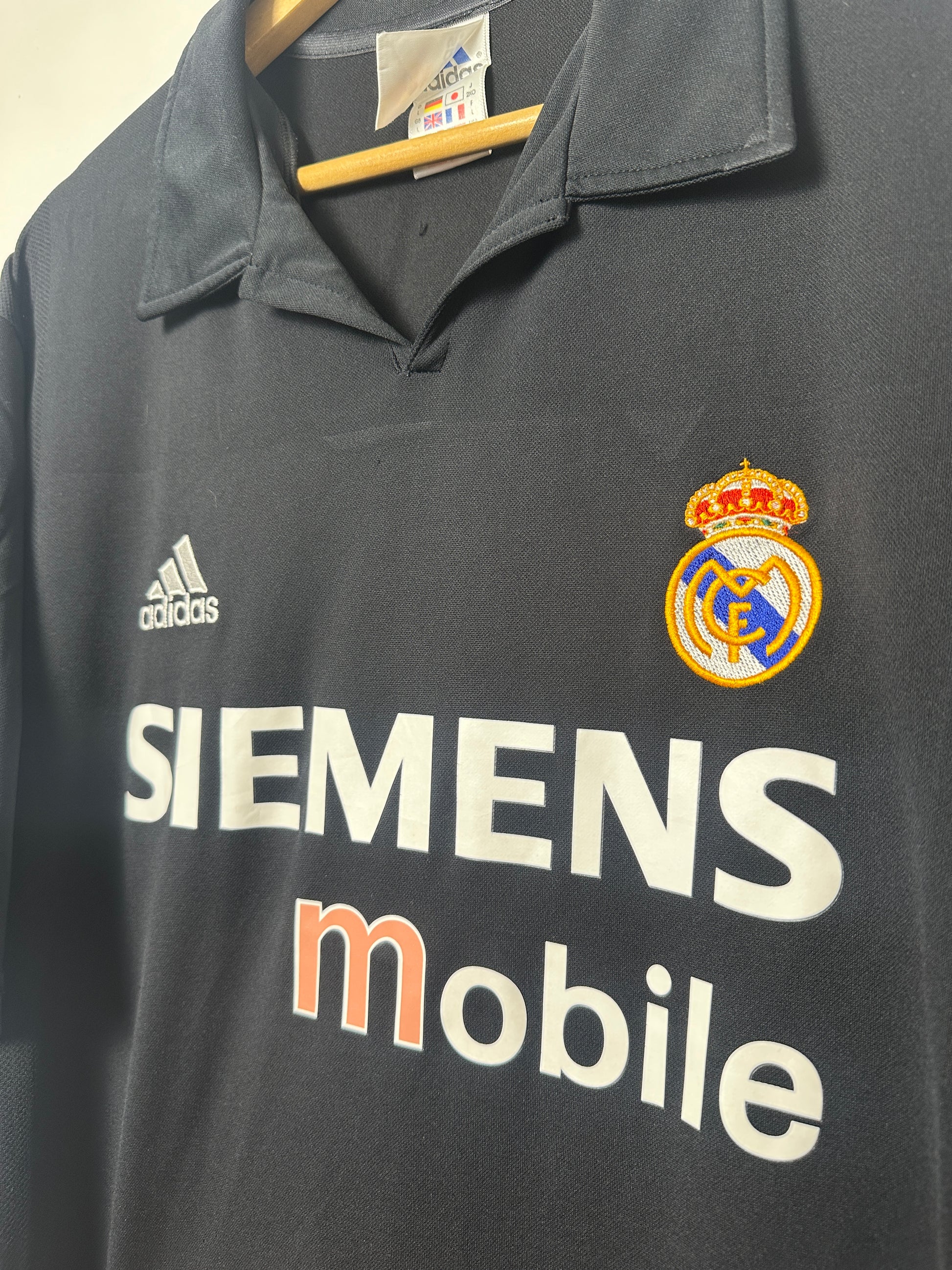 Ronaldo Nazário's legendary Real Madrid era captured in this exceptional Adidas away shirt from 2002-03. Crafted in classic black with pristine condition throughout, this rare vintage piece represents one of football's most iconic periods. The authentic Adidas construction and size L fit make this a prized addition for serious collectors and devoted fans alike. Own a piece of history from when the Brazilian phenomenon dominated European football.