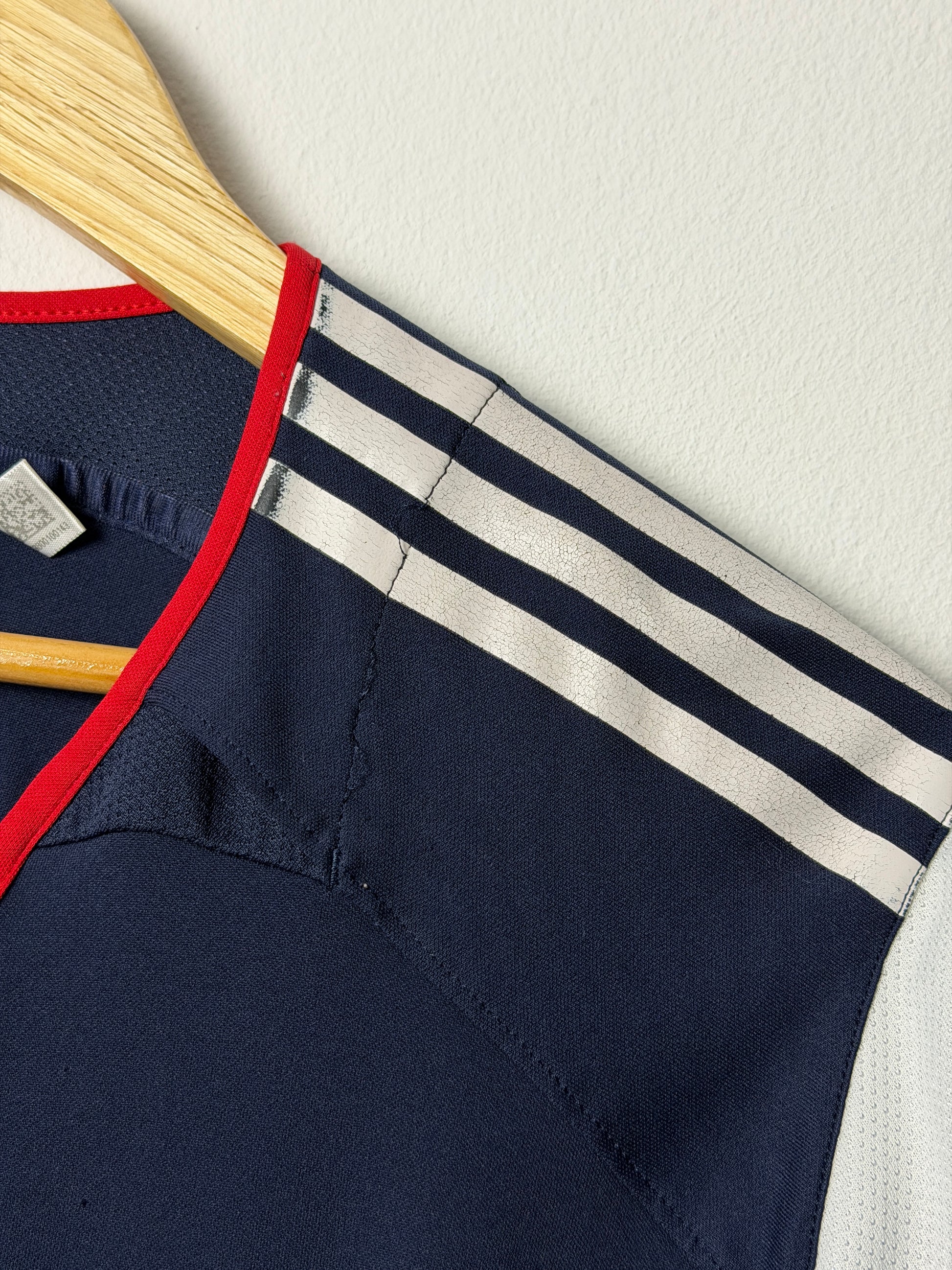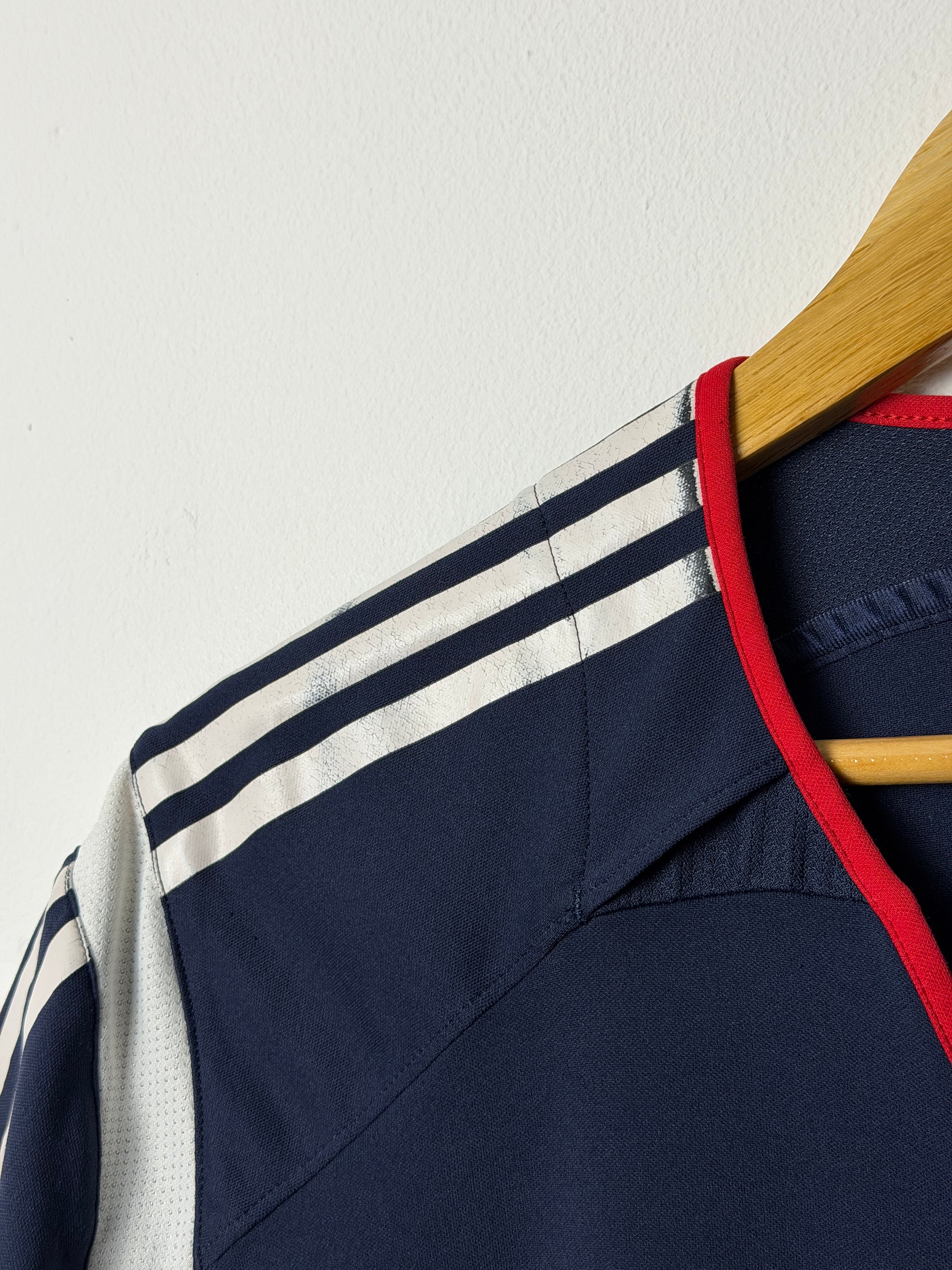 This authentic Wesley Sneijder AFC Ajax away shirt from the legendary 2005-06 season captures a pivotal moment in football history. Crafted by Adidas, this XL vintage piece showcases the iconic design worn during Ajax's dominant campaign. While showing its age with minor wear consistent with genuine vintage kit, the shirt retains good overall condition and remains a prized collector's item. Perfect for devoted Ajax supporters and football memorabilia enthusiasts seeking an authentic piece from Sneijder's formative years at the club.