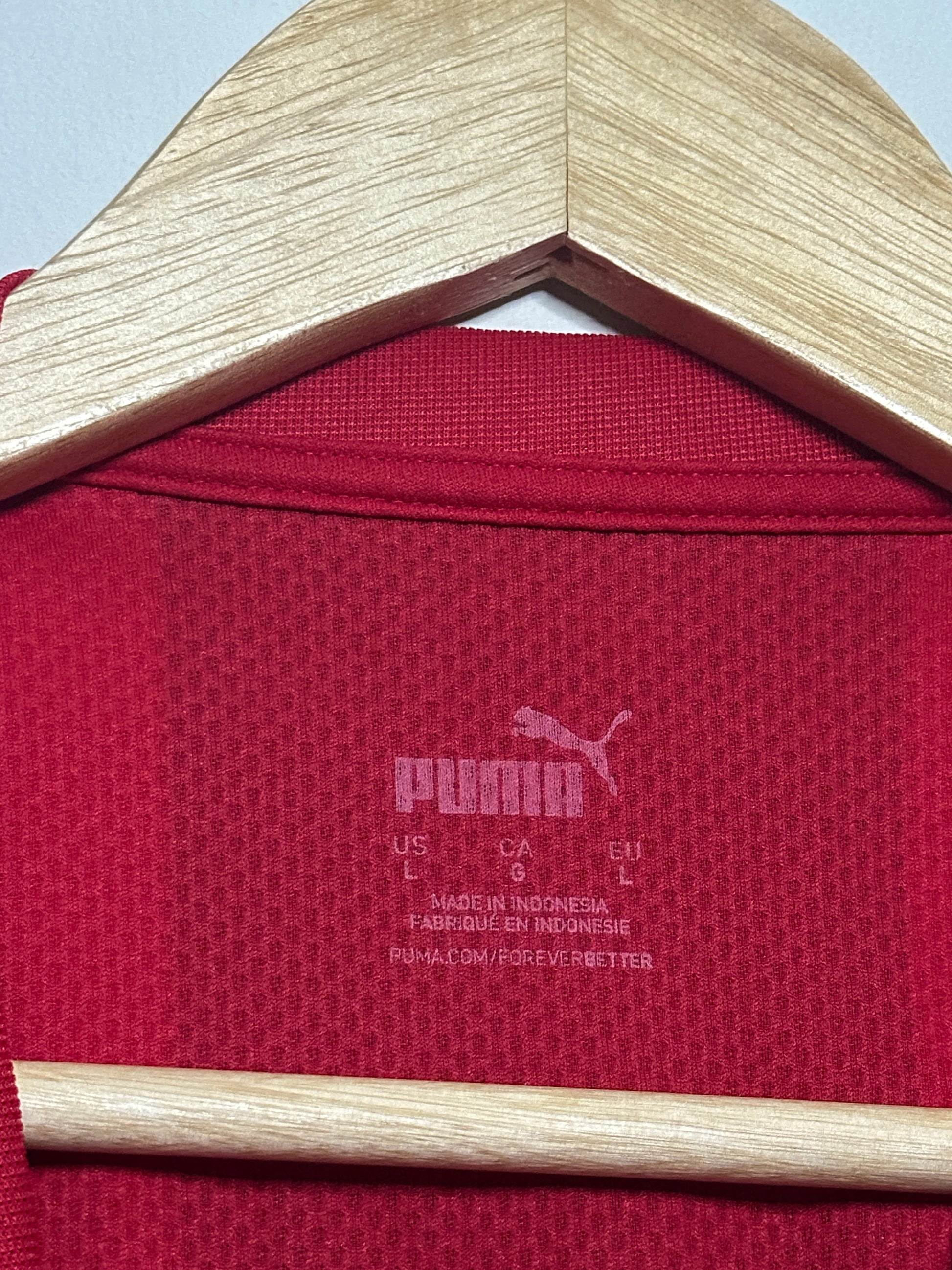 Authentic Puma-manufactured AC Milan home shirt from Zlatan Ibrahimovic's final season with the Rossoneri. This 2021-22 jersey captures a legendary moment in football history, featuring the iconic red and black stripes and official club branding. In excellent condition, this is a must-have for collectors and fans honouring one of football's greatest strikers. Own a piece of Ibrahimovic's remarkable legacy at the San Siro.